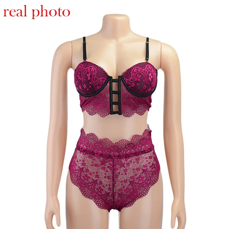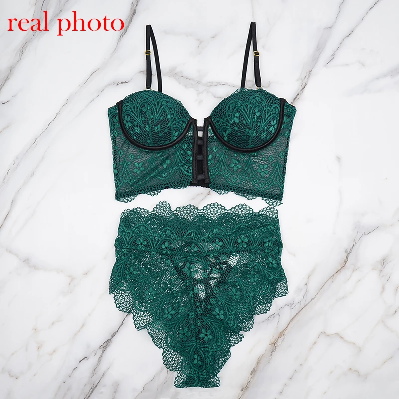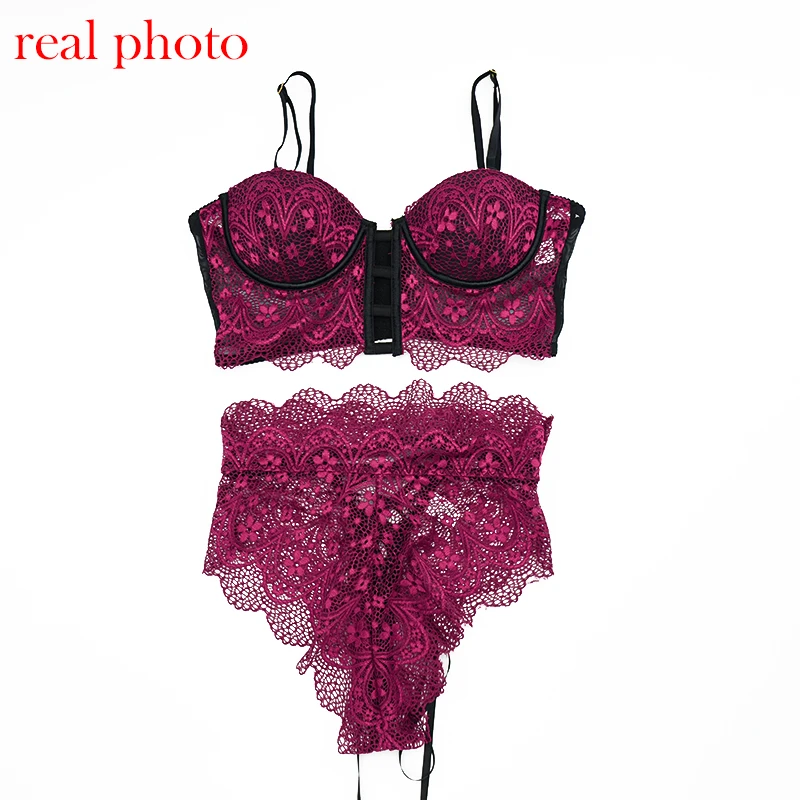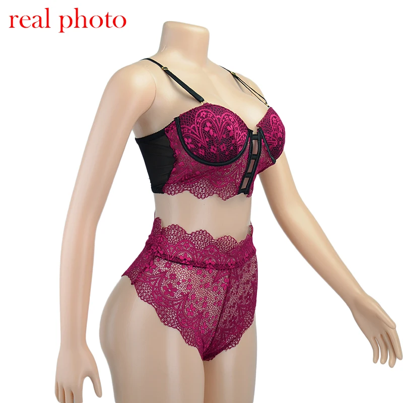 Ellolace Женский комплект нижнего белья, кружевной сексуальный комплект нижнего белья, бюстгальтер с подкладкой и Трусики с высокой талией, кружевные трусы, эротическое белье