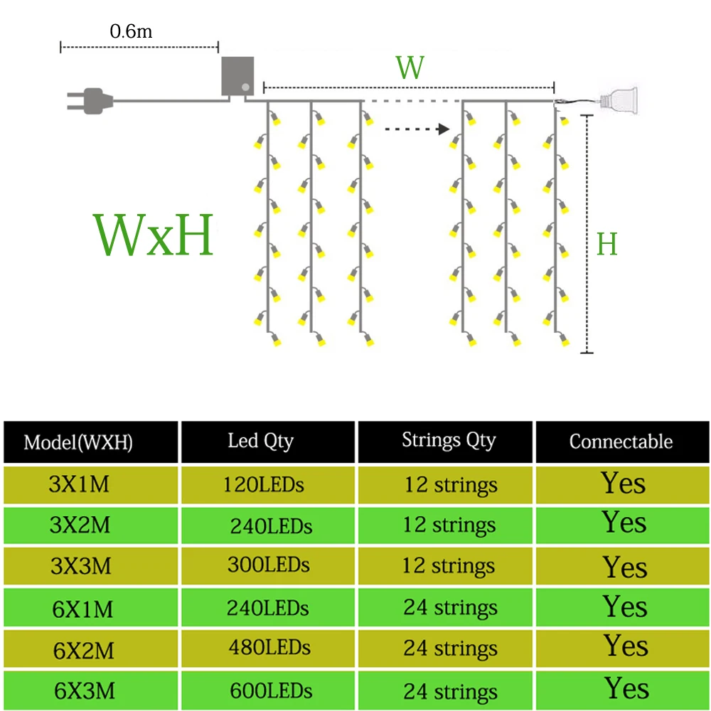 6x3 М 600 светодиодов для дома, Рождества, праздника, Декоративная ...