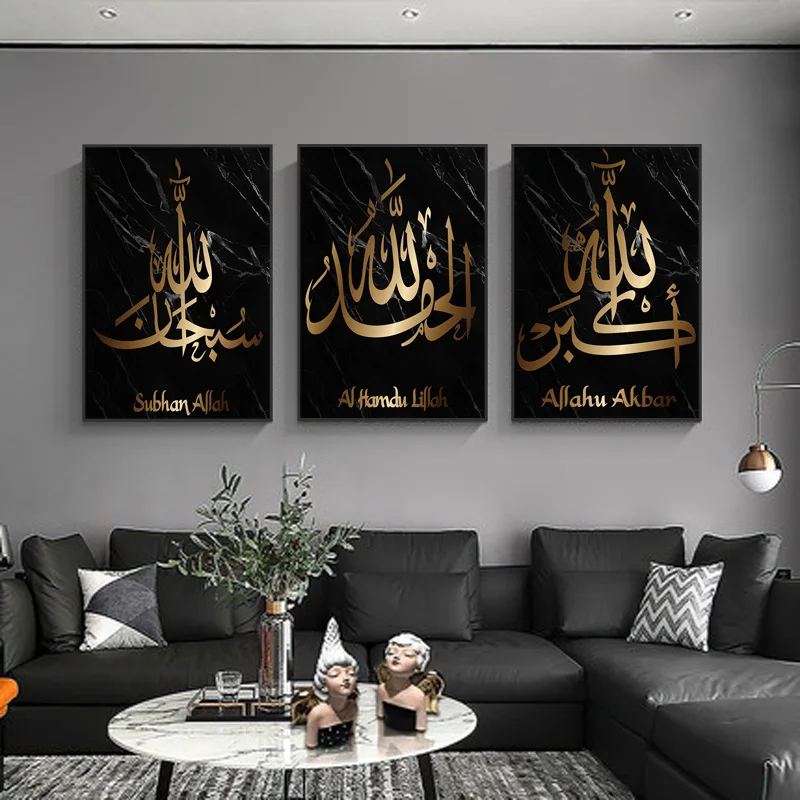 Аллах Исламская каллиграфия настенное Искусство Холст Плакат Картина простота искусственный мрамор фон Современный домашний декор живопись