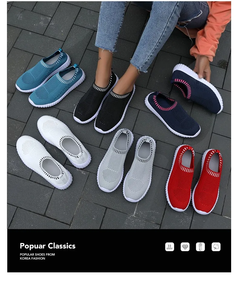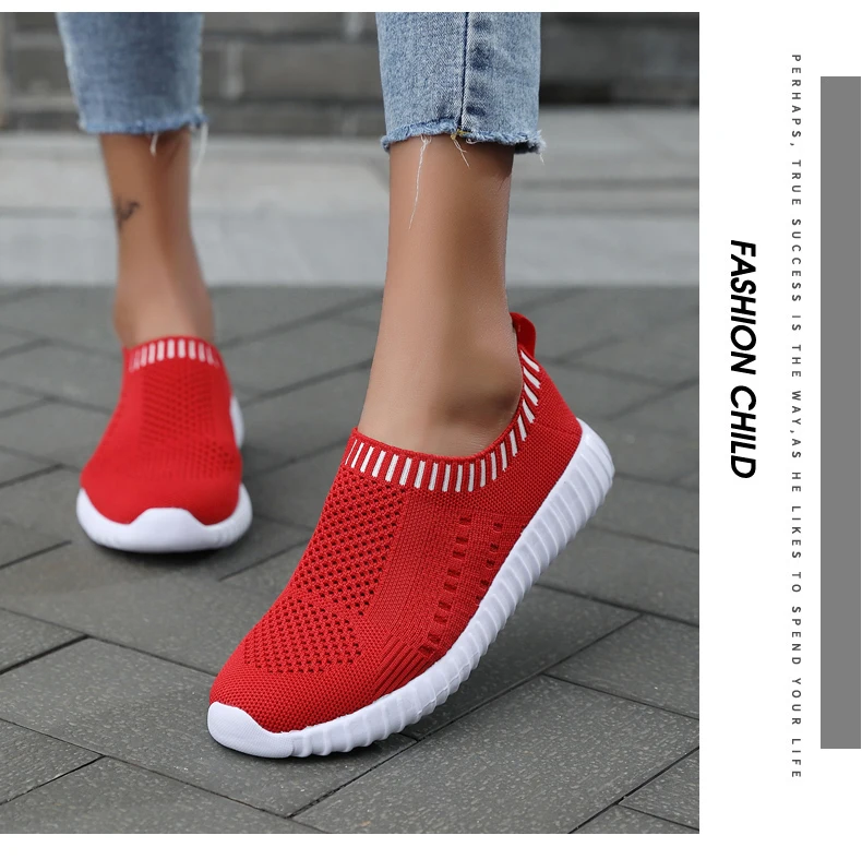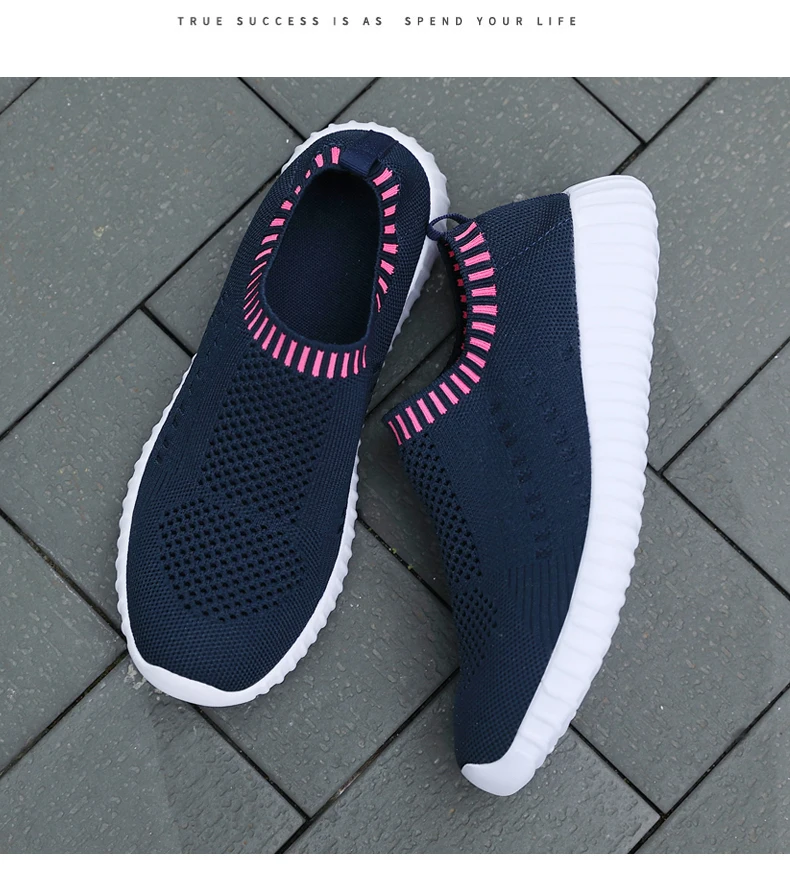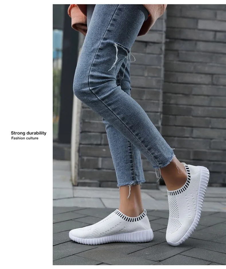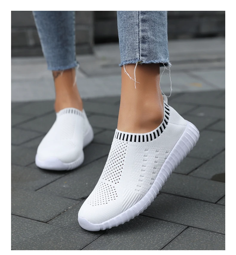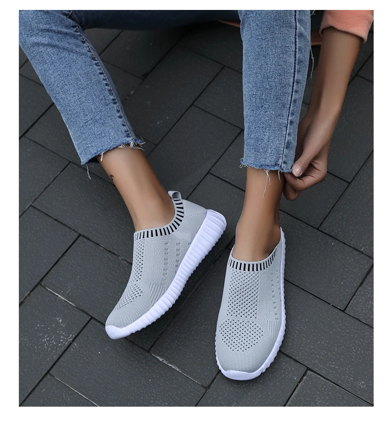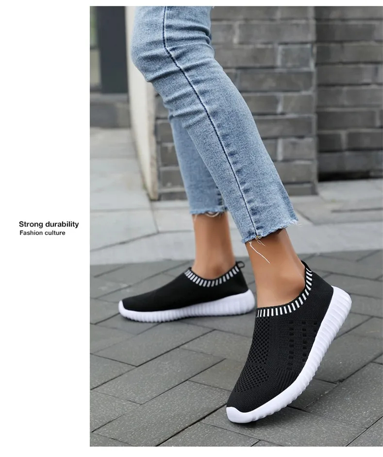 Женские кроссовки размера плюс 43, женские черные кроссовки без шнуровки, вязаная Вулканизированная обувь для тренировок, женская спортивная обувь