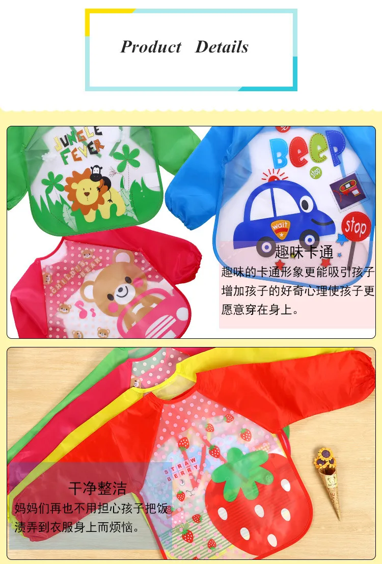 Милые детские нагрудники, водонепроницаемый фартук с длинными рукав...
