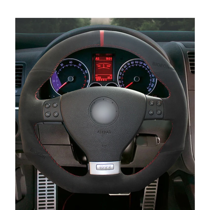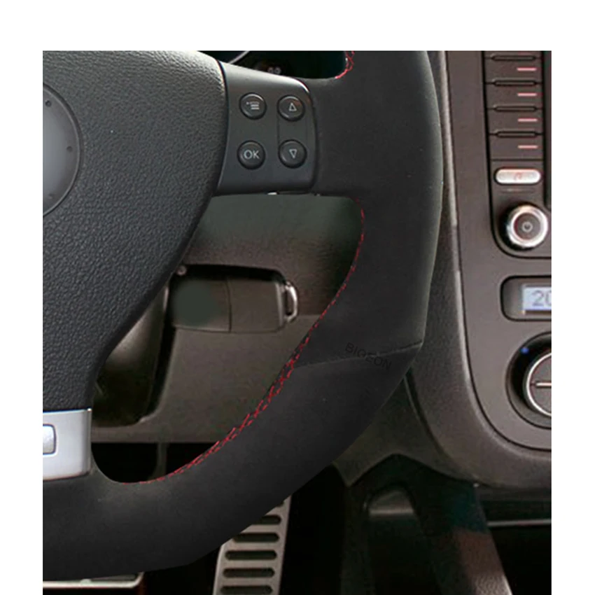 Сшитая вручную черная замшевая искусственная оплетка сделай сам для Volkswagen VW Golf GTI 5 V R32 Scirocco Tiguan Passat вариант