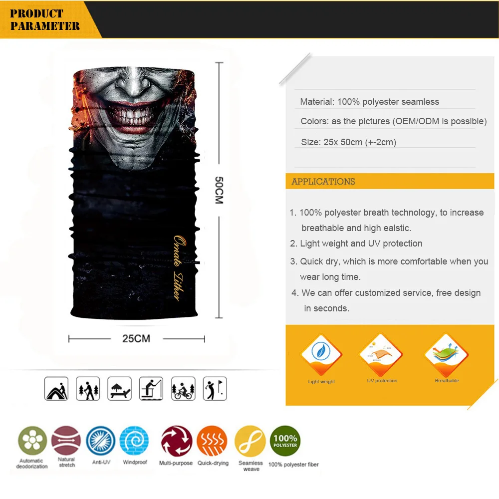 1. Двусторонняя печатная и двусторонняя трубчатая конструкция, которую можно носить более 12 способов 2. Тонкая высококачественная ткань, более дышащая и быстросохнущая, позволяющая свободно дышать, предотвращая рост бактерий и антивирусов. 3. Почему бы не зафиксировать край? Край банданы не прошит, он бесшовный. Этот узор позволяет ткани из полиэстера сохранять боковую эластичность, что делает ее более удобной в носке, а в использовании лезвия с обеих сторон могут слегка скручиваться. 4. Универсальный дизайн для защиты от УФ-лучей и от укусов комаров. 5. Технология цифровой теплопередачи печати, двусторонняя печать рисунка, спереди и сзади одинаковый рисунок, рисунок четкий и нестираемый, стойкий к цвету. 6. Легкие гетры на шею универсальны, их также можно использовать как гетры на шею, шапки и головные уборы, маски для лица, солнцезащитный шарф, Балаклаву, пиратскую тряпку, шапку, повязку на руку, браслет и шапка с подкладкой, отвечает вашим требованиям. 7. Вы все еще беспокоитесь, что не сможете купить достаточно одноразовой маски для лица? Мы можем использовать бандану, чтобы защитить себя, чтобы избежать вирусов или бактерий, она подойдет для покупок на улице, путешествий, трекинга, скалолазания ....