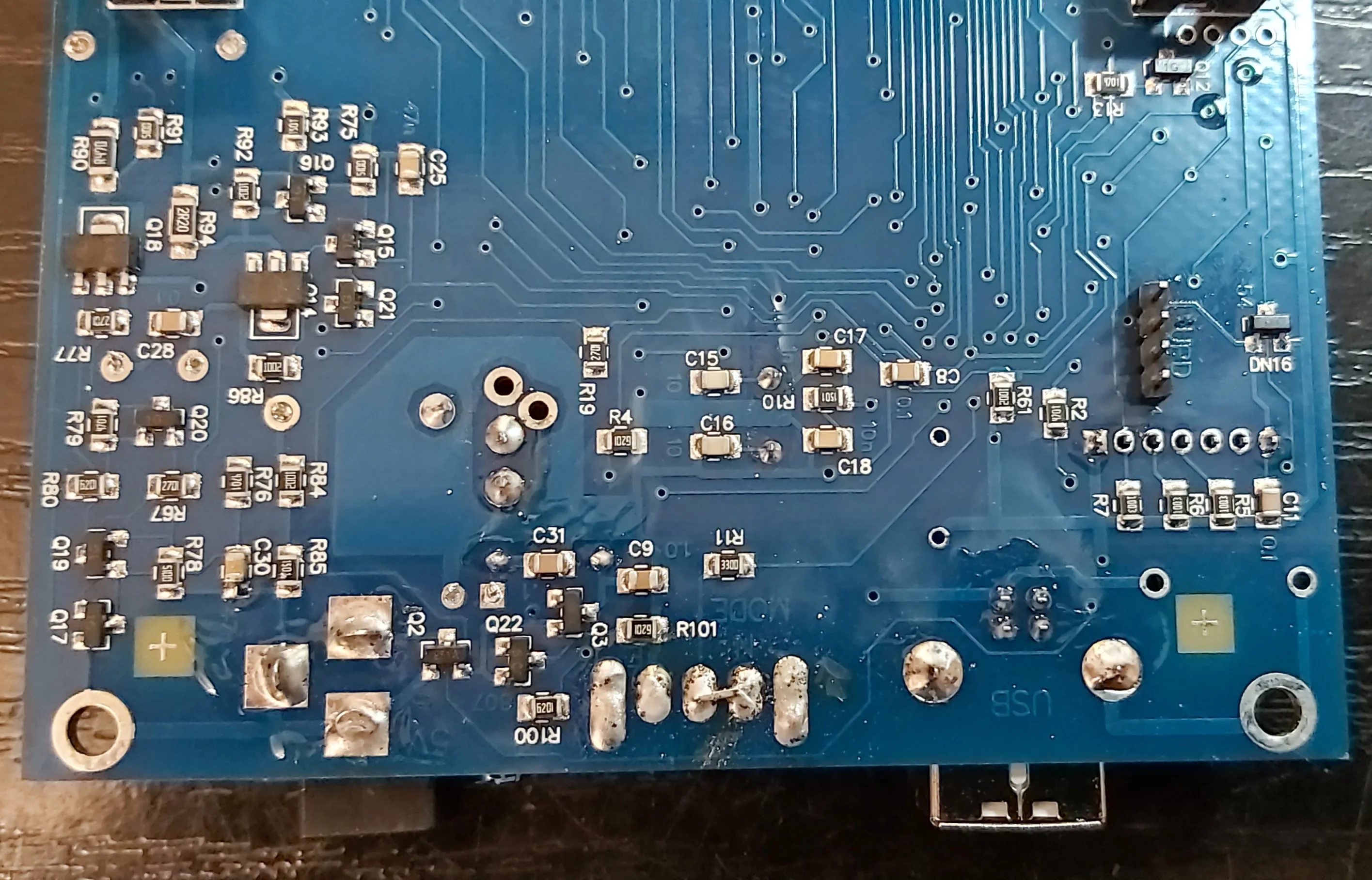 Груз прибыл через 15 дней, упакован в две картонные коробки, завернутые в серебряную фольгу. К сожалению, качество ПХД не самое лучшее: сдвинуты компоненты, капли олова, Плохая пайка, загрязнение потока. Вы должны наклеить наклейку на жилье самостоятельно. Я боялась его включить. После исправления ошибок я начинаю тестирование.