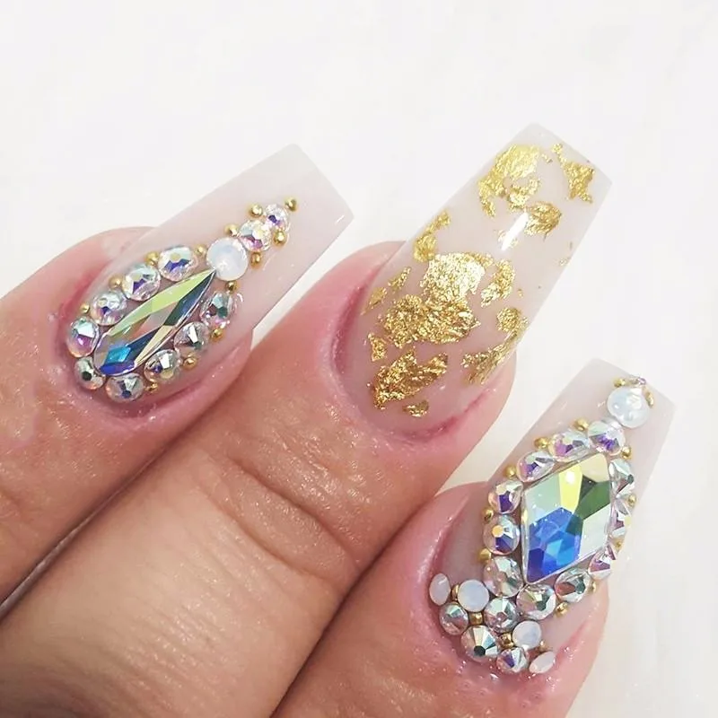 Стразы для украшения ногтей, с плоской задней поверхностью, с золот...