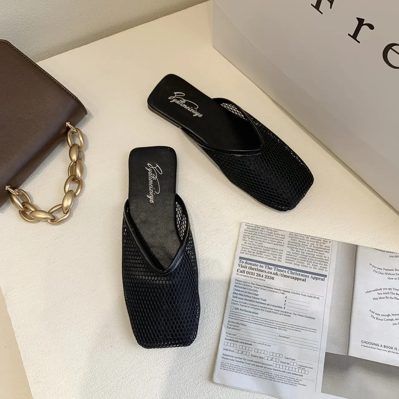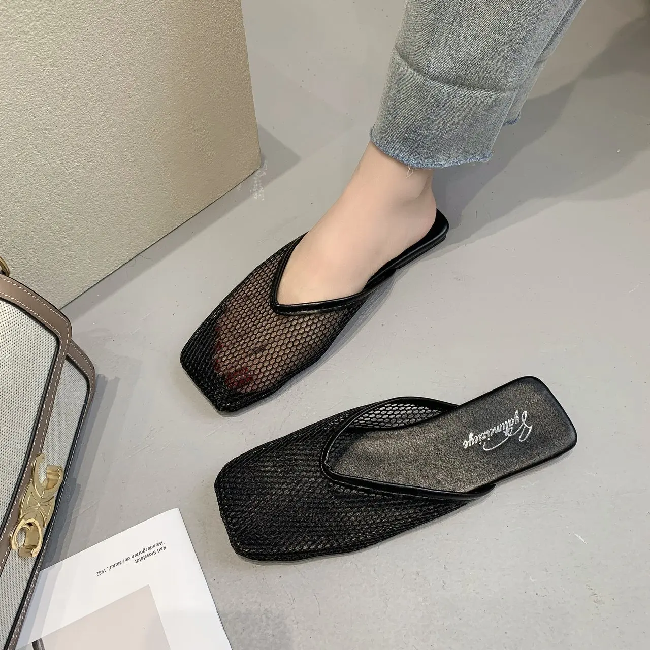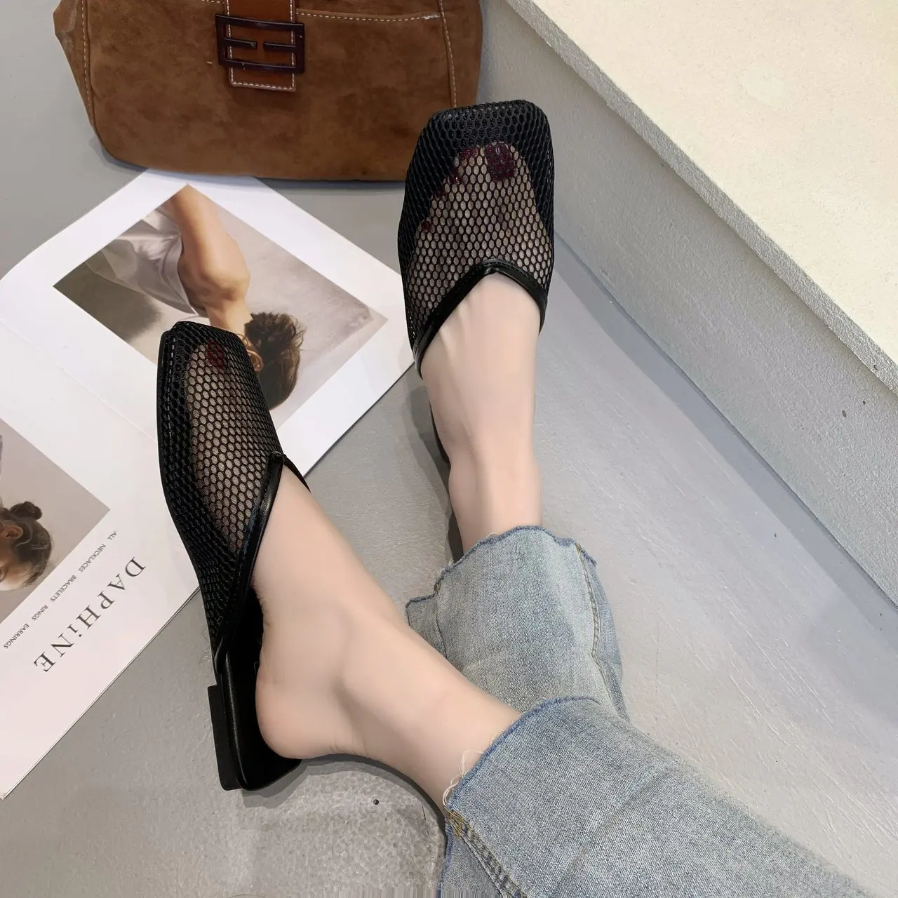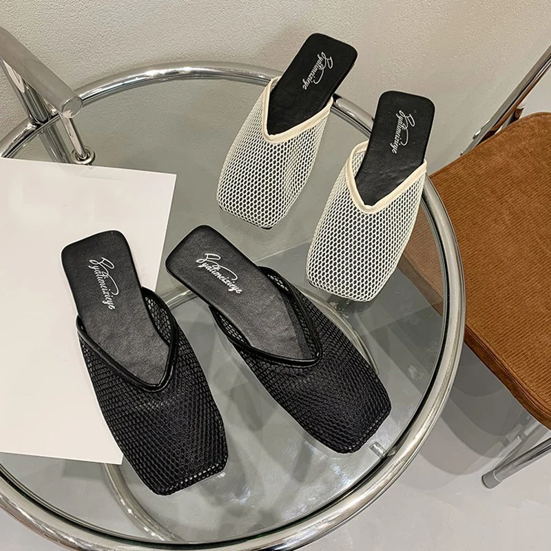 Женские ажурные сетчатые шлепанцы, винтажные туфли-лодочки с квадратным носком, модель BC244, лето 2021