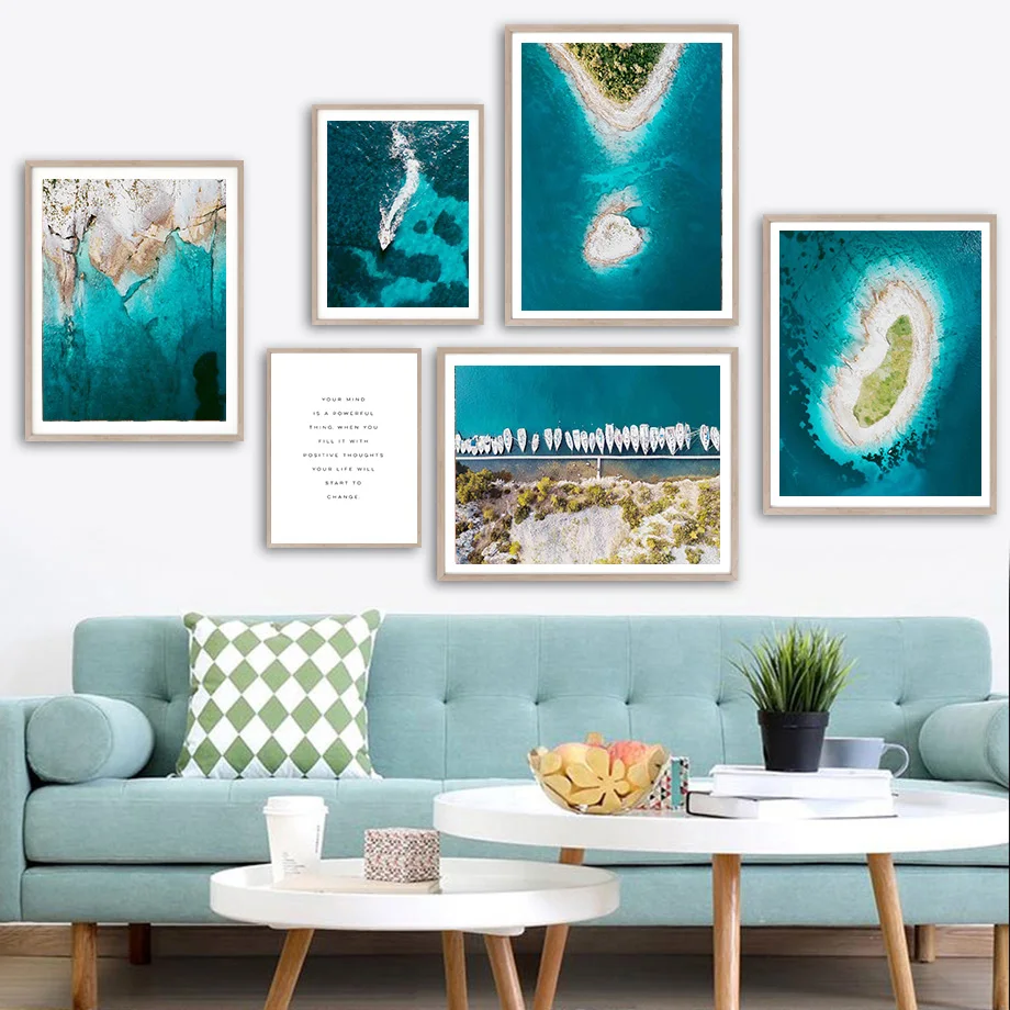 Розовый Эгейский пляж волна ракушка Пальма настенное Искусство Холс...