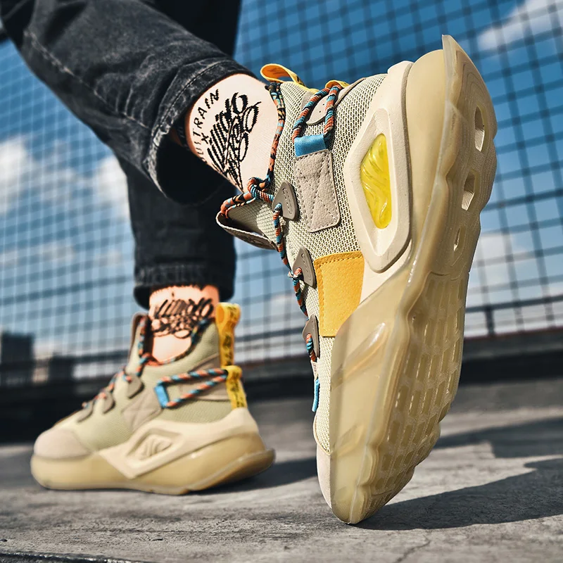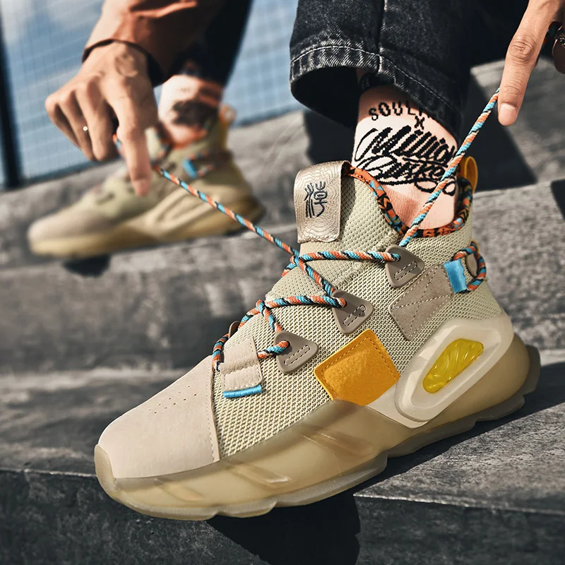 Мужские яркие высокие мужские ботинки, мужские кроссовки на шнуровк...
