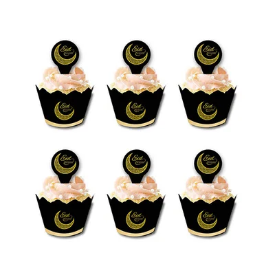 Золотистые Серебристые блестящие топперы для кексов ИД Мубарак праз...