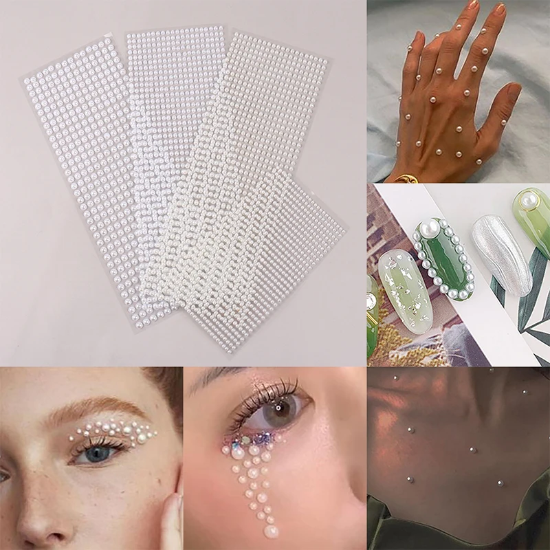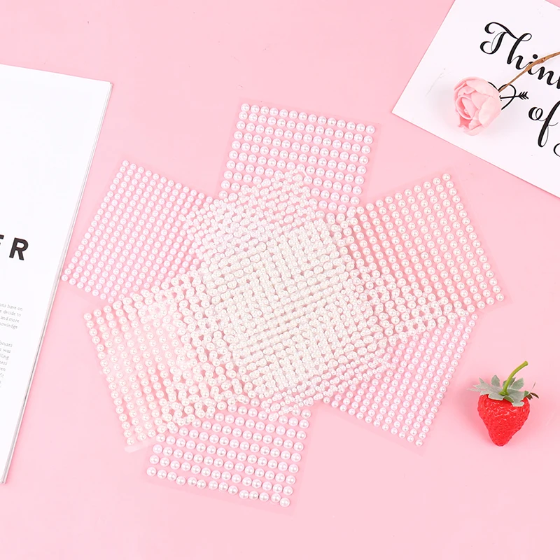 3456 мм белые плоские круглые жемчужины из АБС-пластика, самоклеящиеся стразы, наклейки для творчества, декоративные материалы для макияжа