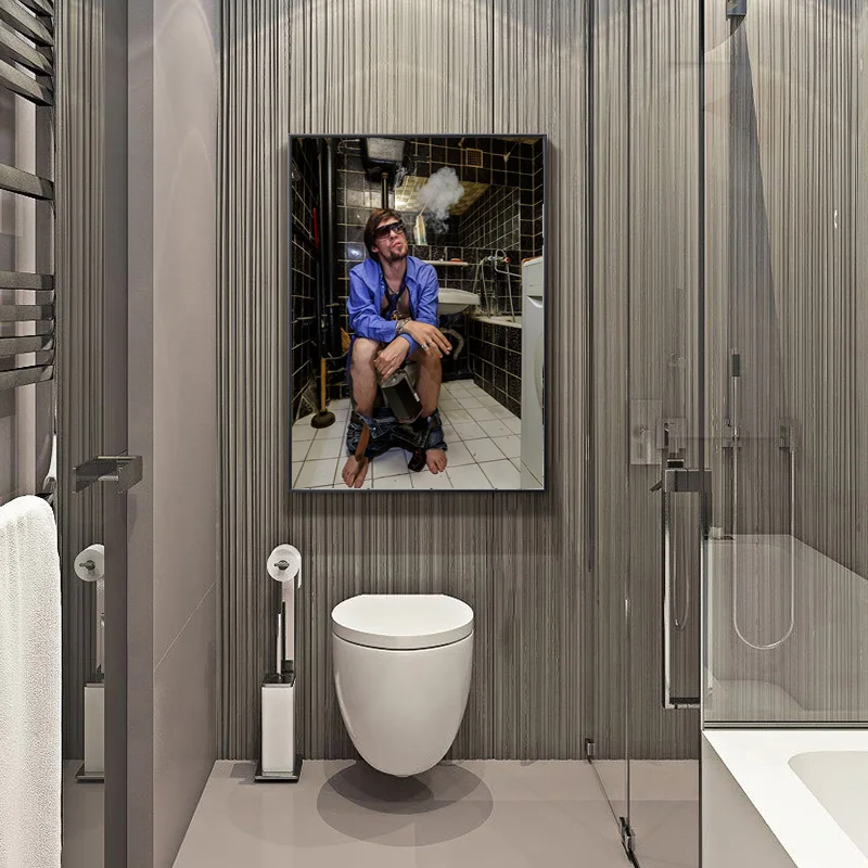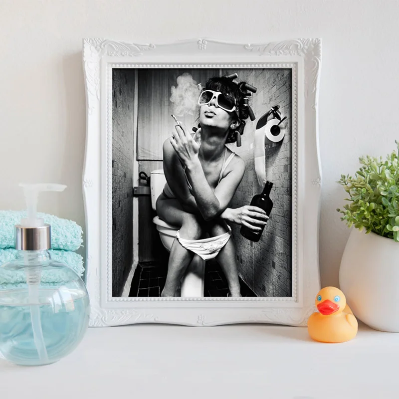 Сексуальная женщина курит на унитазе холст настенные плакаты и прин...