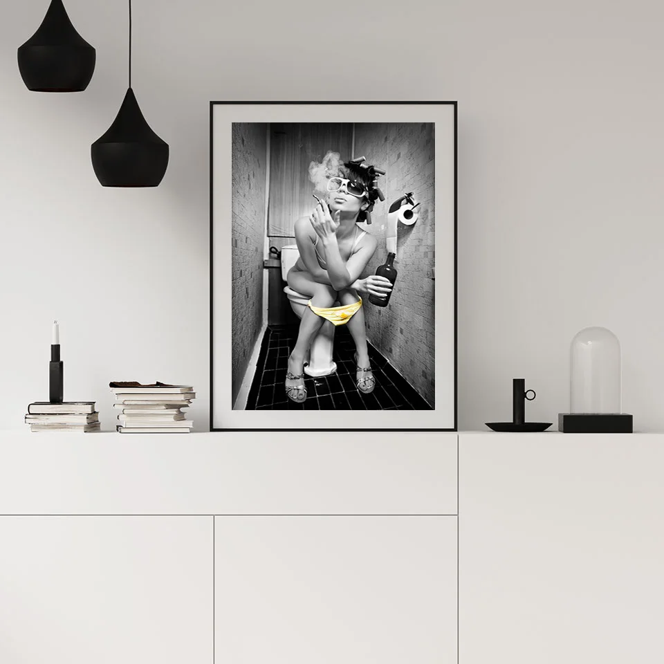 Постеры и печатные плакаты в скандинавском стиле с изображением черно-белого туалета, сексуальной женщины, девушки, современного стиля для гостиной, домашнего декора
