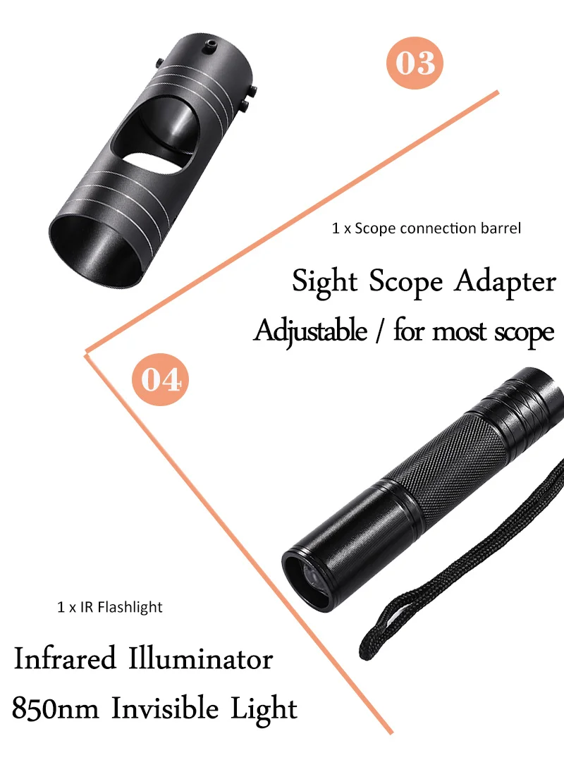 С видео записью ночного видения вы можете видеть любой объект в полной темноте. Чтобы вы могли наслаждаться охотой днем и ночью. Вы можете увидеть до 400 ярдов диапазон с ИК-светильник ночного видения. Идеально подходит для широкого спектра использования, таких как наблюдение, Ночная охота, наблюдение за дикой природой и исследования пещер и так далее.