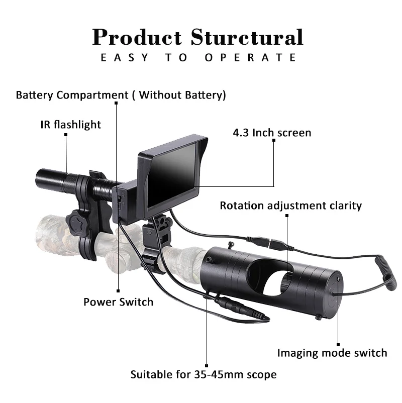 С видео записью ночного видения, вы можете видеть объект на ЖК-экране независимо от дня и ночи, это более удобно, чем просмотр непосредственно через область.