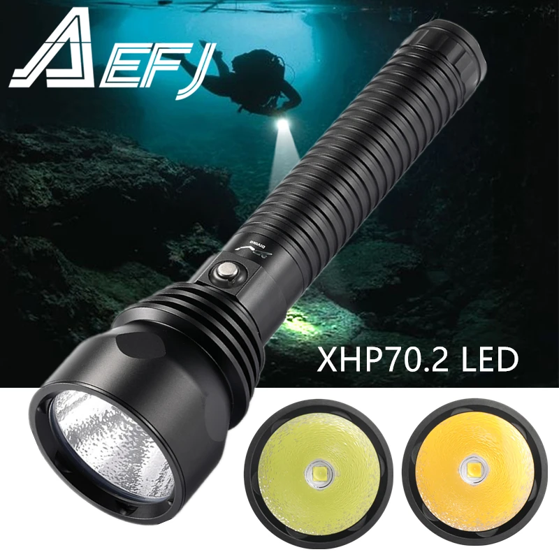 Погружения светильник желтыйбелый светильник XHP70.2 светодиодный вспышка для подводного погружения и светильник супер яркий 26650 фонарь подводный 150 м Водонепроницаемый лампы