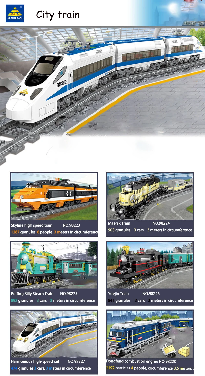 KAZI 1160 шт. + строительный блок с электроприводом для городского поезда, совместим со всеми брендами, железнодорожные модель подарок игрушка