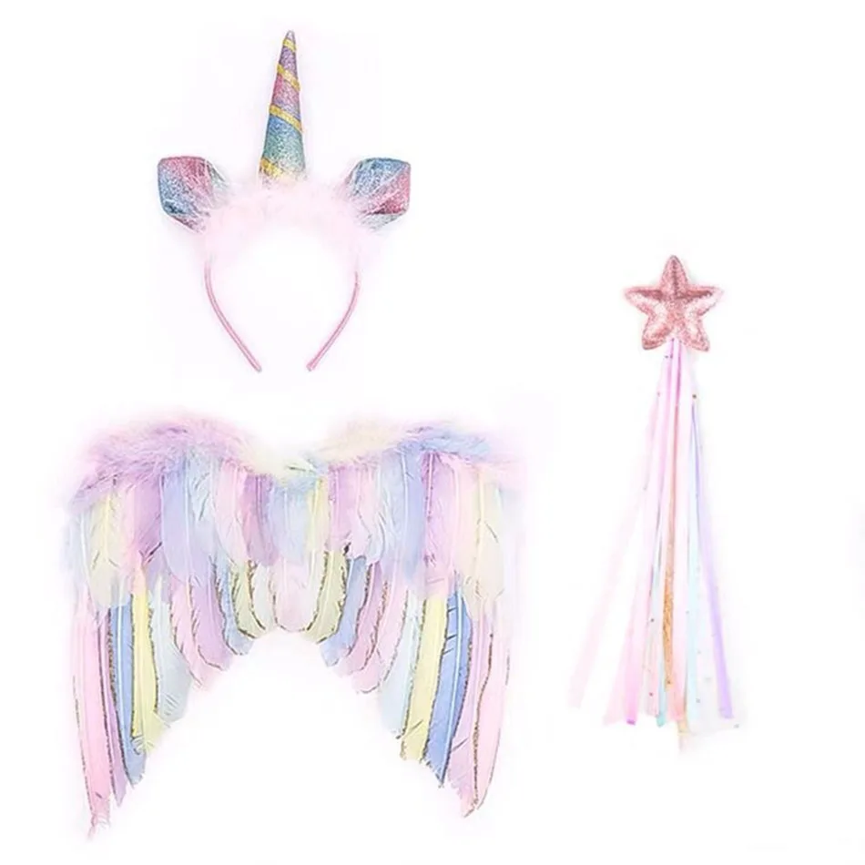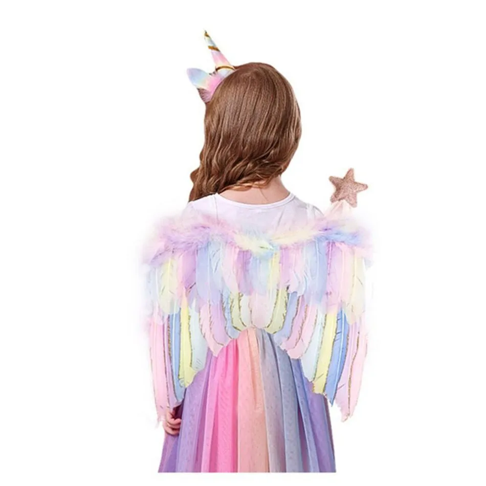 Принцесса девочки Единорог наборы для косплея Радужный цвет повязка на голову крылья Фея волшебная палочка детский маскарадвечерние костюм Сценические наборы
