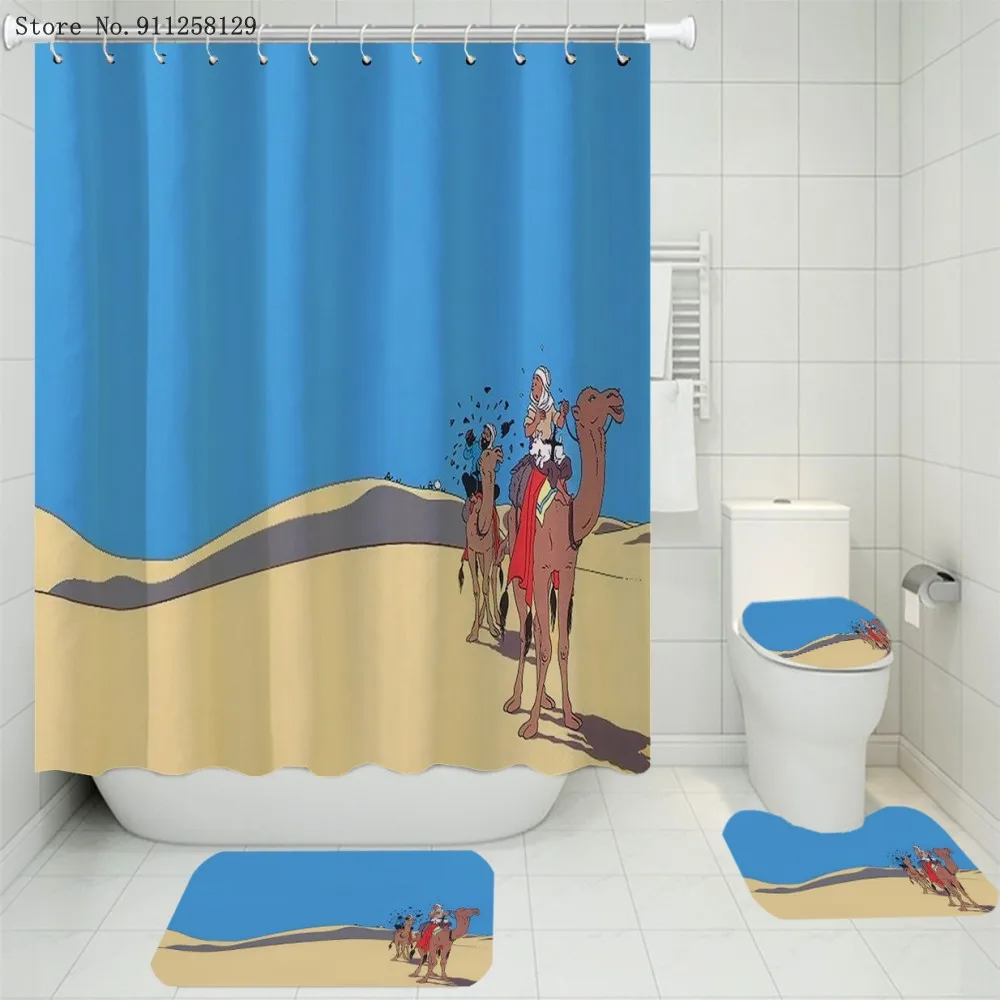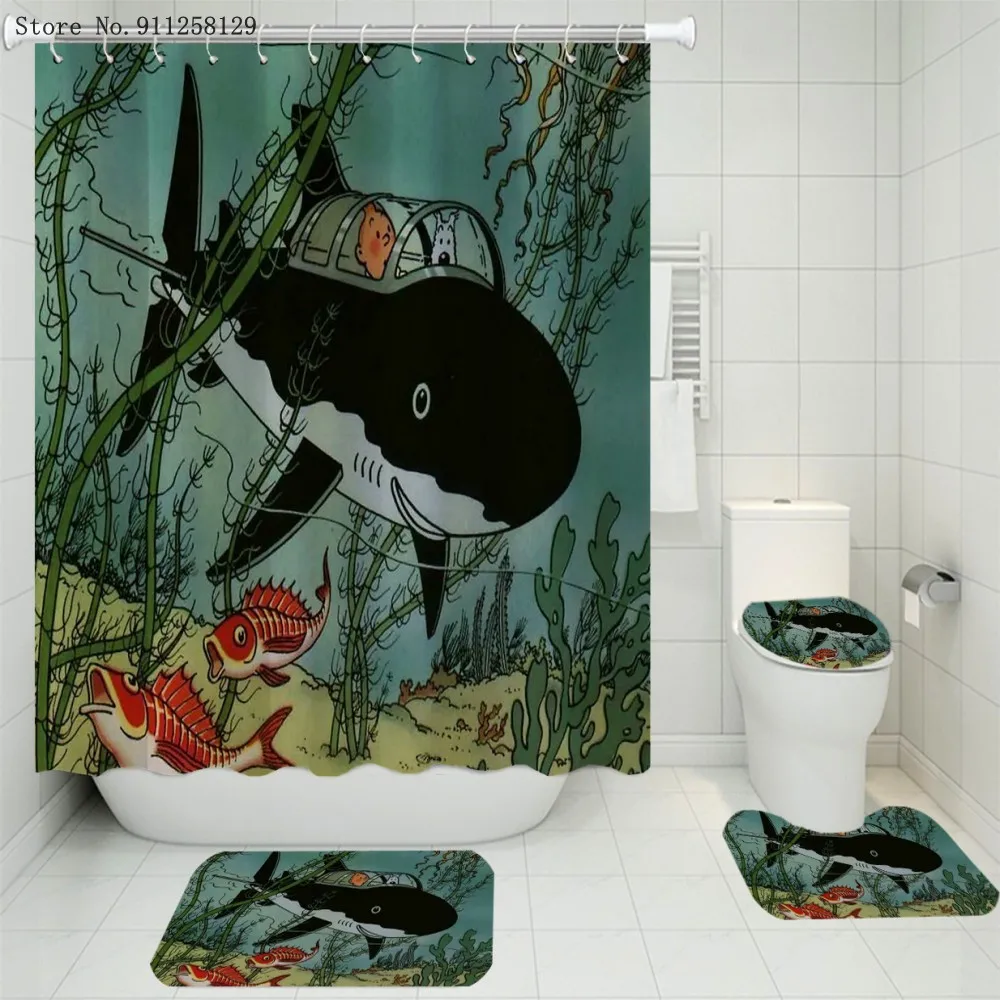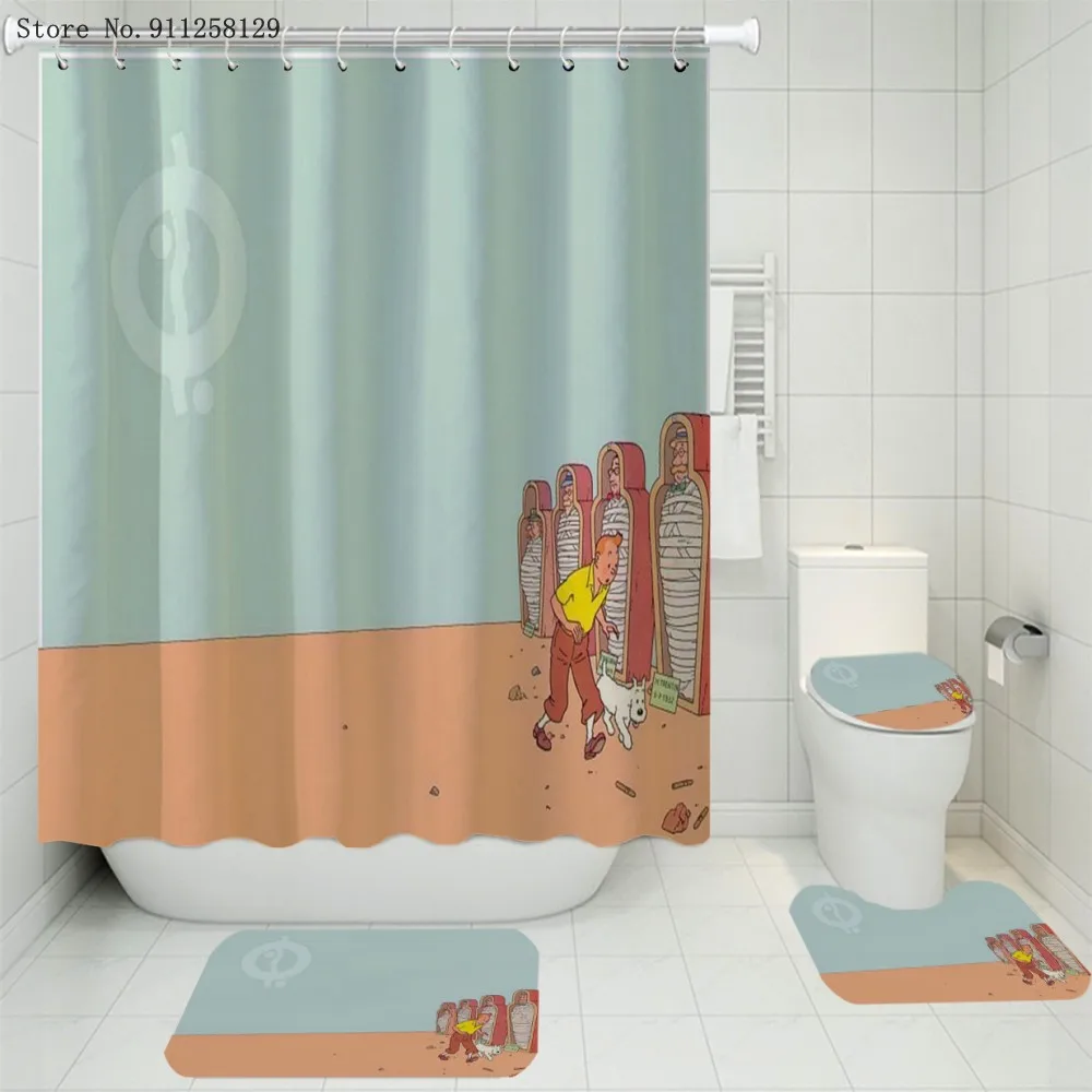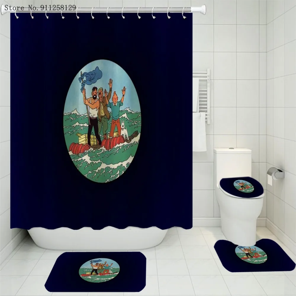 4 штуки приключение Тинтин Душ наборы штор мультфильм ковер с аниме пьедестал коврик крышка унитаза коврик для ванной набор для ванной