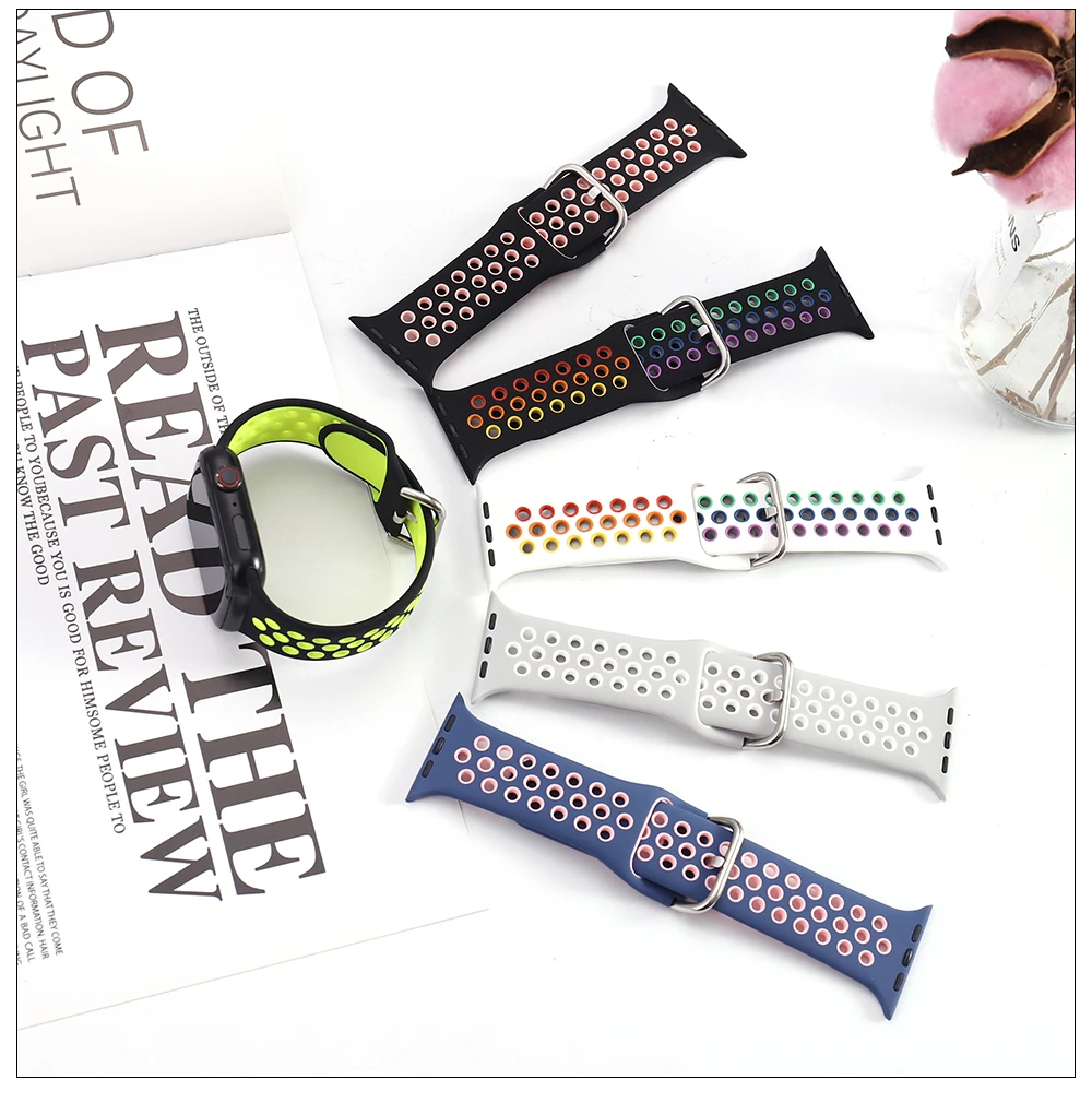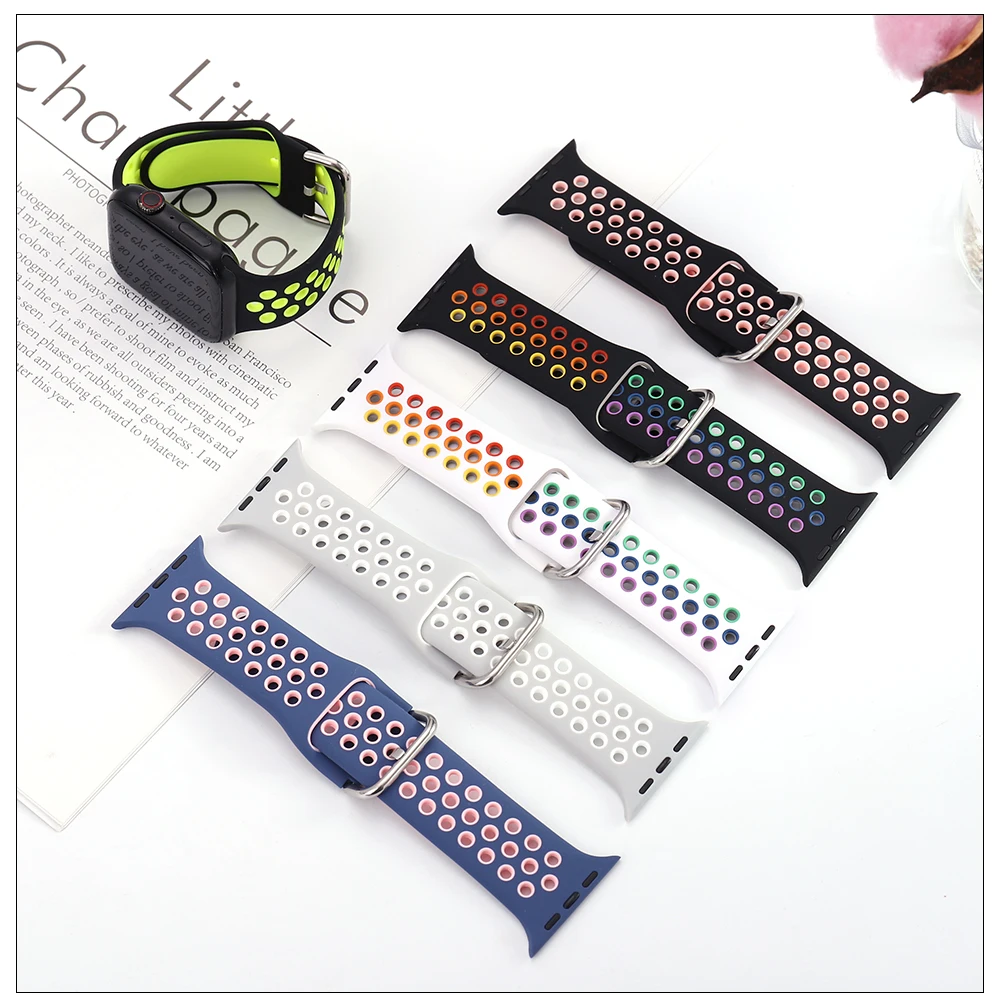 Ремешок силиконовый для iWatch 44 мм 42 мм 40 мм 38 мм, двухцветный...