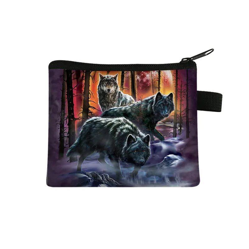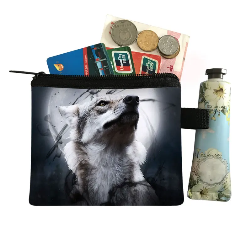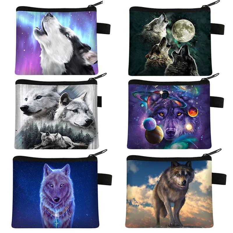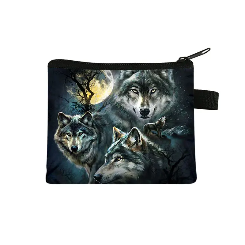 Кошелек для монет Wild Wolf, дамская сумочка для монет с 3D принтом, чехол для хранения удостоверения личности волка и кредитных карт