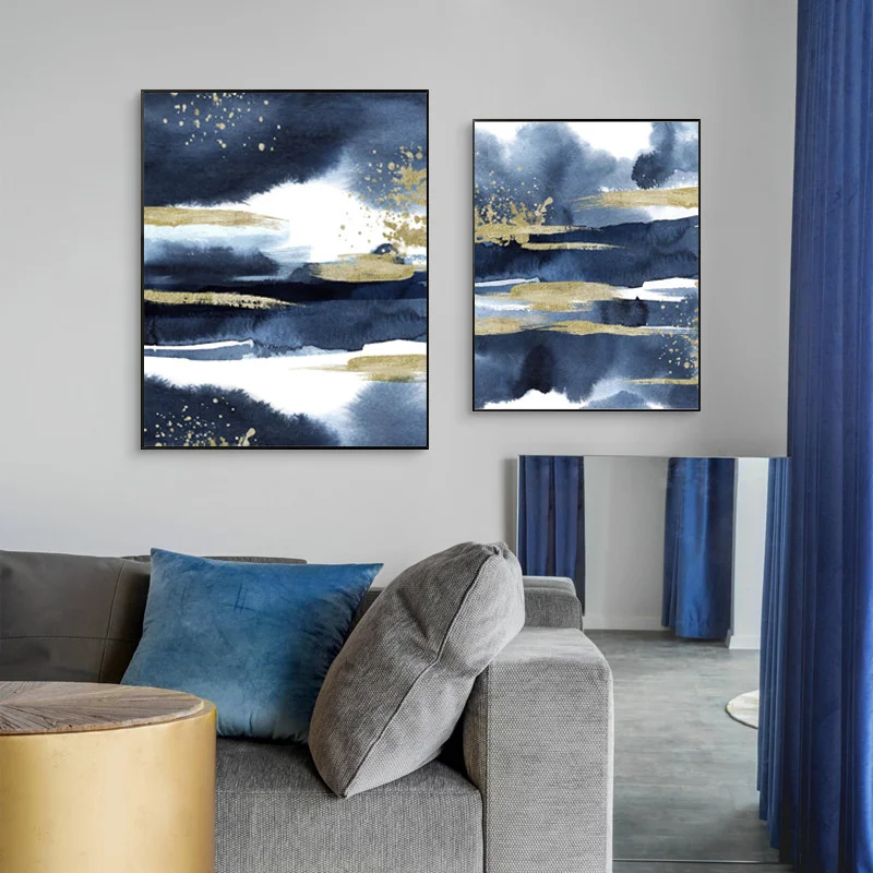 Абстрактный ландшафт геометрический черный серый синий Желтый цветной блок холст живопись Настенная картина Печать постер украшение гостиной