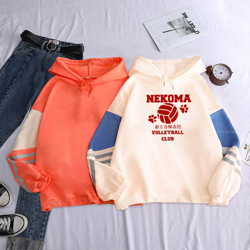 Толстовка с капюшоном Харадзюку из мультфильма Haikyuu Nekoma, Женский свитшот в японском стиле аниме Karasuno Fly High уличная одежда с графическим принтом, унисекс, в стиле пэчворк