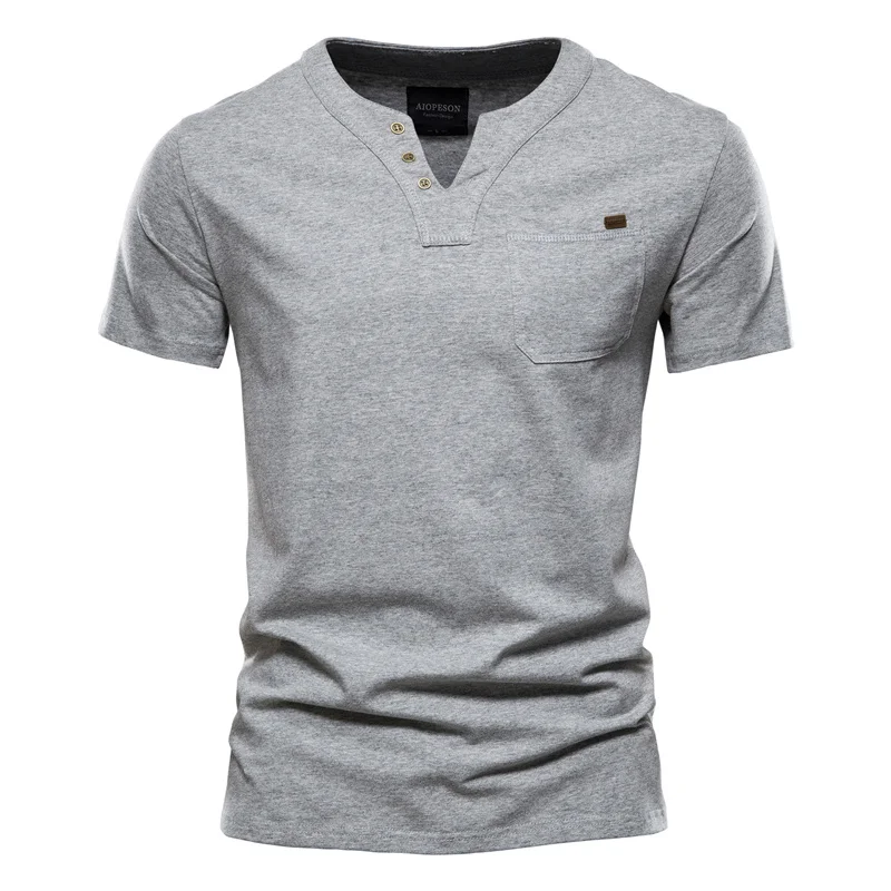 Повседневные хлопковые мужские футболки AIOPESON, однотонные классические мужские футболки с V-образным вырезом, новые летние высококачественные мужские футболки с коротким рукавом