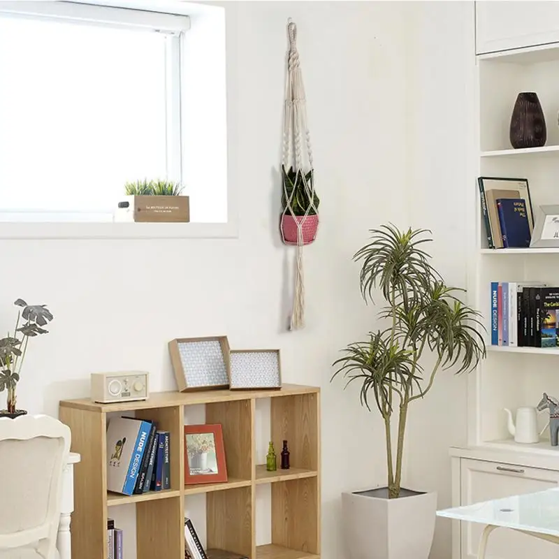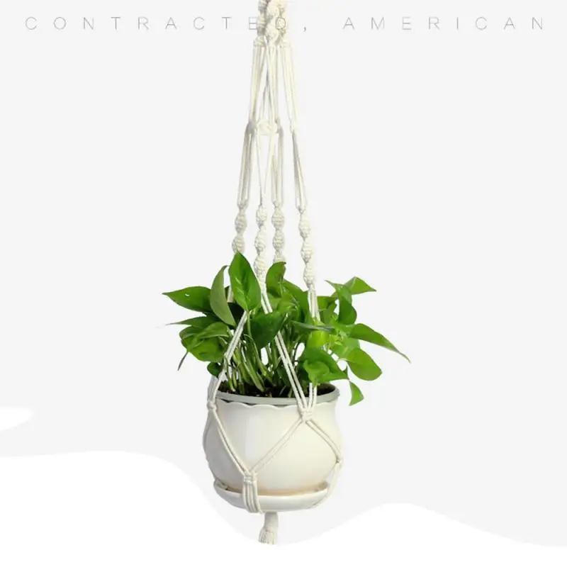 Растительная зеленая подвесная Корзина вешалка из хлопка пеньковая веревка ручной вязки.