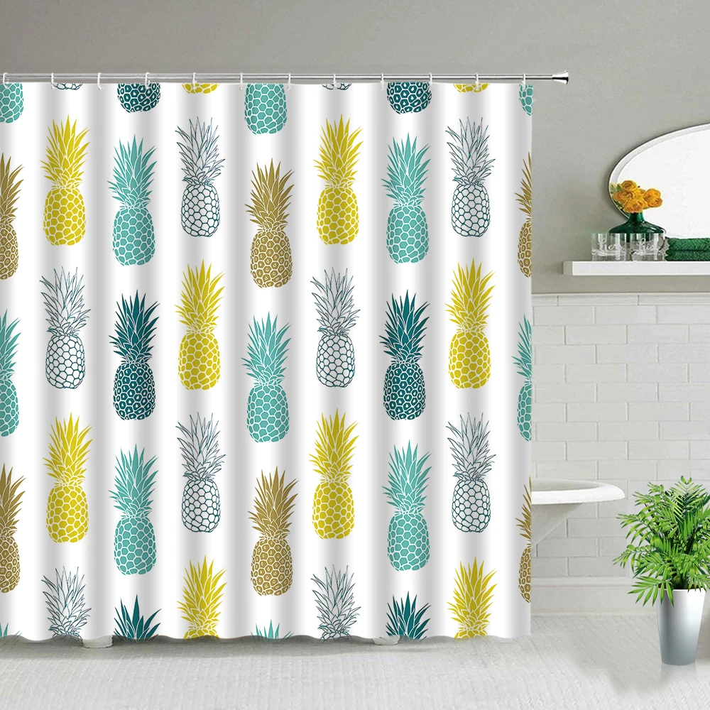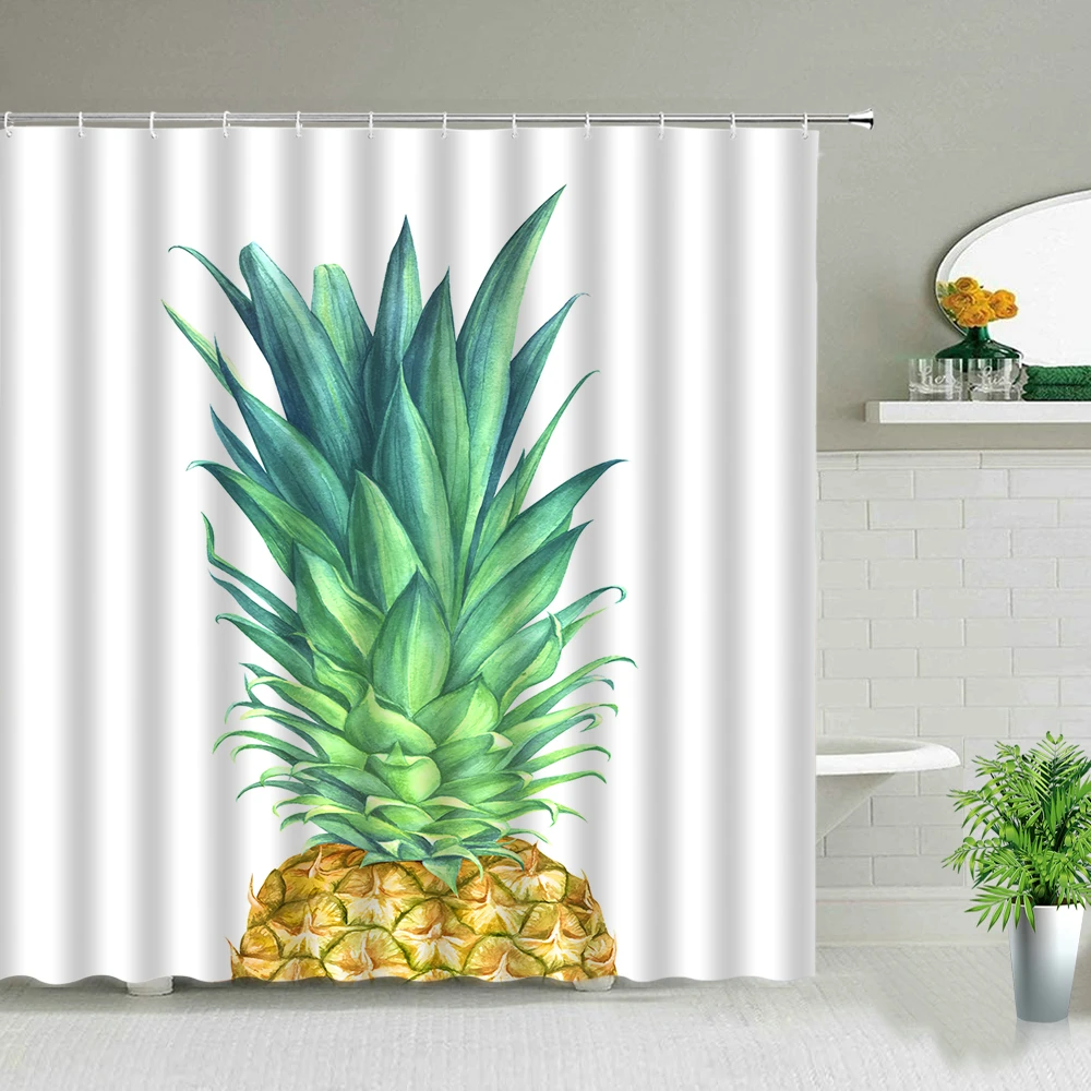 Тропические фрукты, ананас, художественный постер, занавеска для душа, фон, Декор, экран для ванной комнаты, водонепроницаемая ткань, занавеска для ванной с крючками