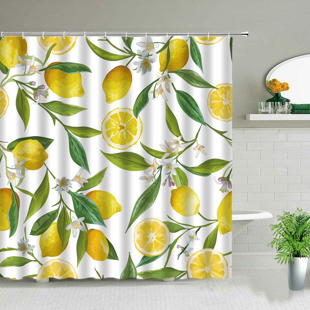 Занавески для душа с изображением фруктов, растений, лимона, апельс...