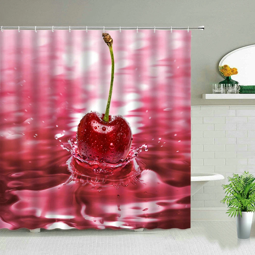 Штора для душа с экзотическим рисунком фруктов, занавеска из водоне...