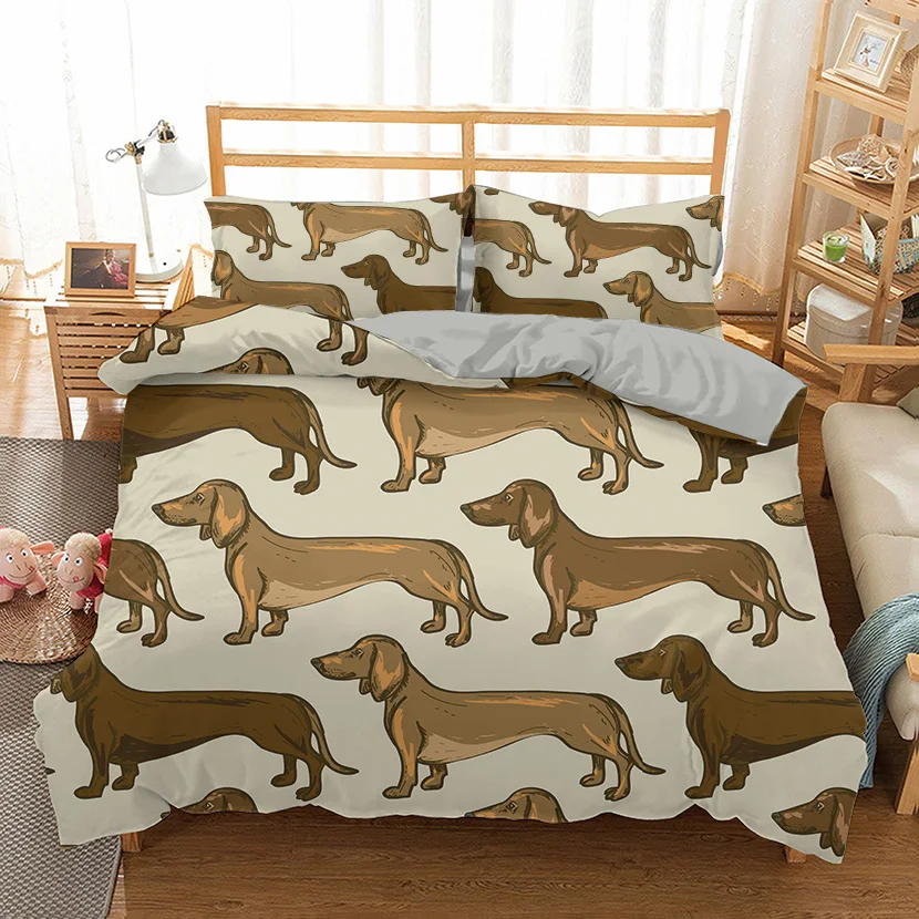 Комплект постельного белья oentyo с изображением таксы из мультфильма, симпатичный пододеяльник с собачкой, постельное белье с принтом для домашних животных, постельное белье для детей