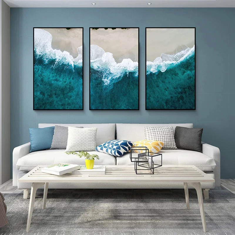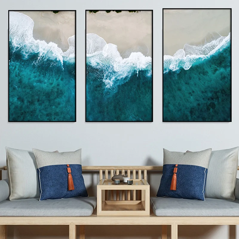 Абстрактная картина маслом на холсте морской пейзаж, настенное искусство, синее море, фотография для украшения гостиной, дома