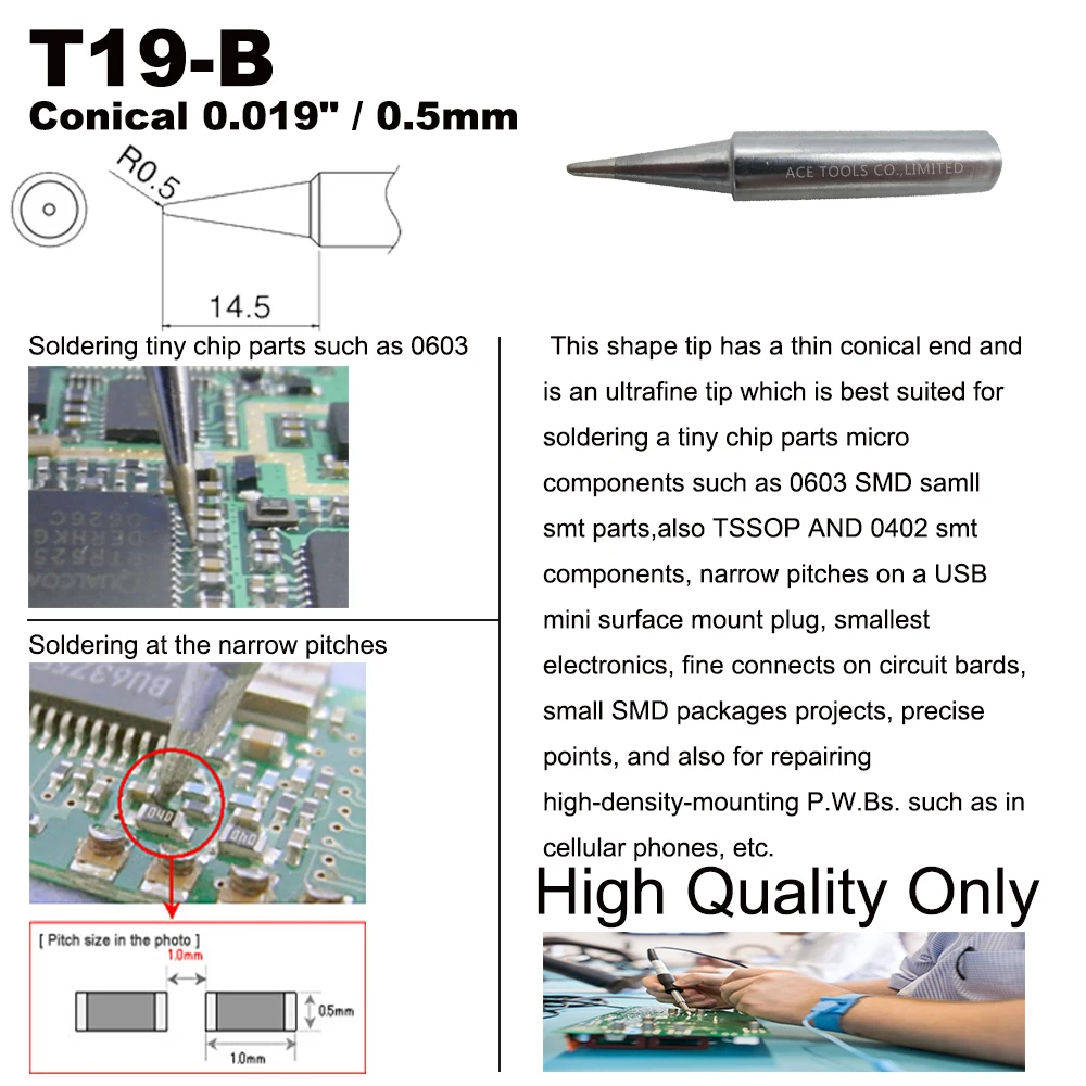 1. Серия HAKKO T19 сменный паяльный наконечник, наконечник паяльника, наконечник ручки, наконечник паяльника, наконечник карандаша (не производитель HAKKO, но бренд "AiCE Tls")