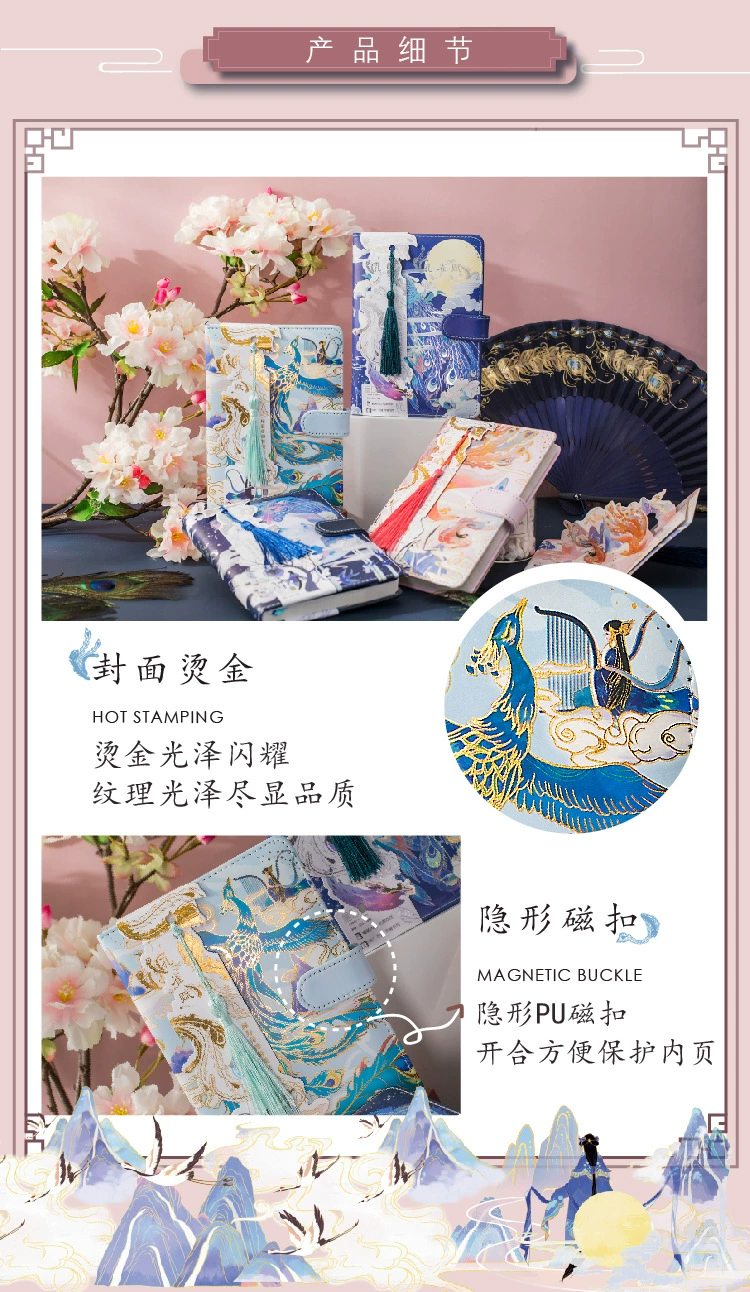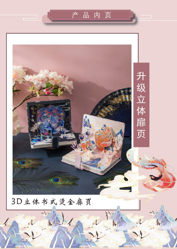 Записная книжка в китайском стиле с магнитной застежкой, блокнот с трехмерной заглавной страницей