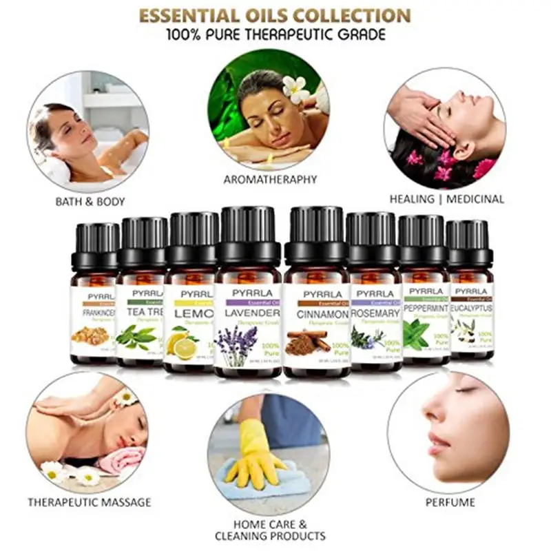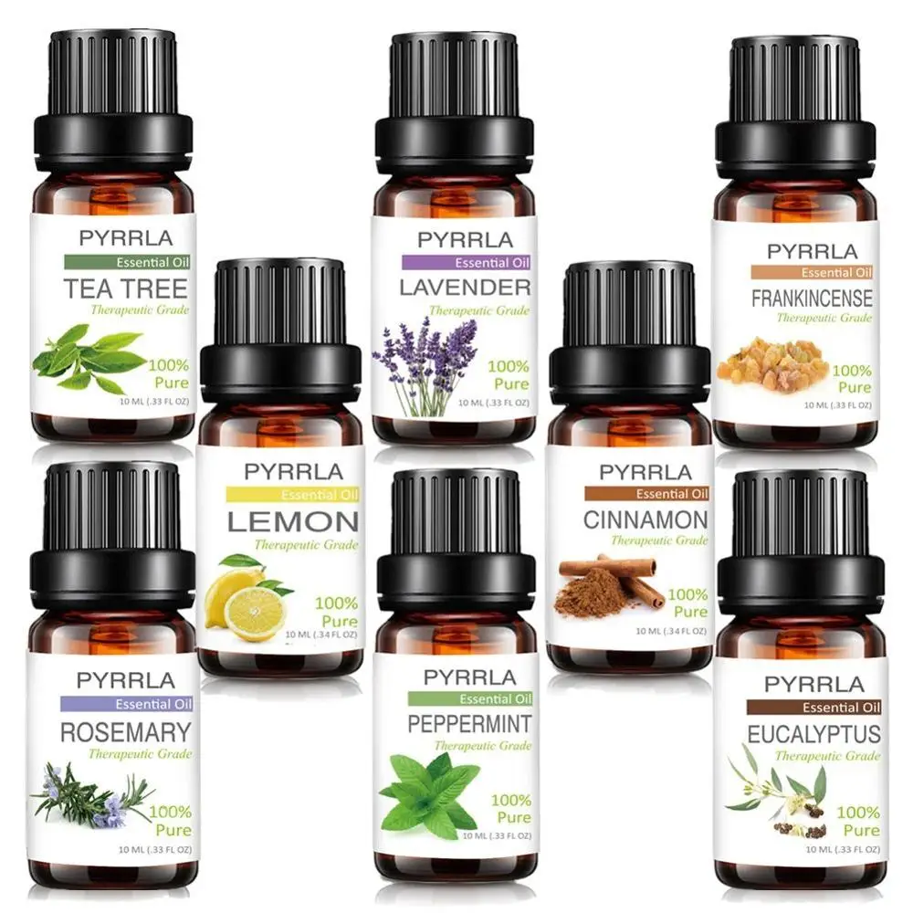 Набор эфирных масел Pyrrla, 8 шт. в подарочной коробке, эвкалипт, лаванда, перечная мята, чайное дерево, розмарин, лимон, корица, ладан