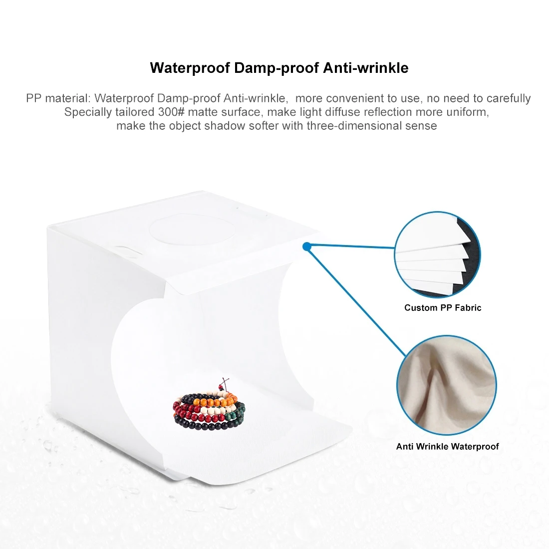 1. Светильник для фотосъемки предназначен для небольших предметов для любителей фотографии, ремесленников, художников, продавцов etsy и других онлайн-продавцов, профессионалов и клиентов по рекламе продукта. 2. Светильник-бокс-студия позволяет быстро и легко снимать мелкие товары, такие как ювелирные изделия, аксессуары, игрушки, часы, гаджеты и другие предметы. 3. Соберите свою собственную фотостудию в любом месте в течение нескольких минут, вы можете развернуть этот светодиодный лайтбокс-студия и разместить его на любой поверхности, чтобы получить идеальный фон для фотосъемки небольших предметов, фотографирования продуктов. 4. Портативная складная конструкция магнитной цепи, более удобная в установке и переноске, Встроенный светодиодный светильник, обеспечивающий средний Светильник, предотвращает появление теней и отражений на фотографиях. 5. Источник питания: 5 В, 1 А (не поддерживает выходное напряжение USB более 5 В, например, быструю зарядку).