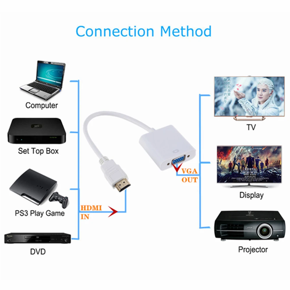 Кабель-преобразователь HDMI штекер-гнездо VGA Grwibeou, цифровой аналоговый HD 1080P для ПК, ноутбуков, планшетов