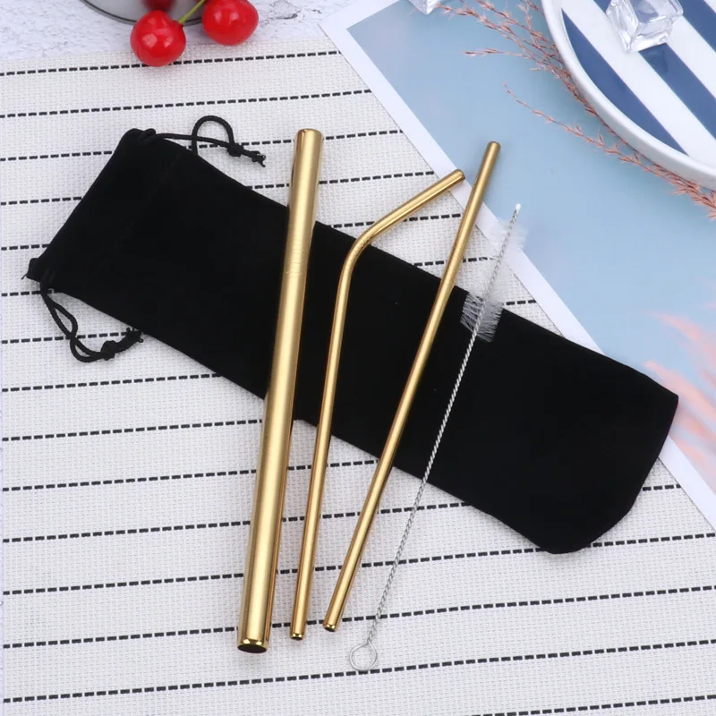 Многоразовые металлические трубочки для питья 304 Нержавеющаясталь прочный гнутые прямые соломинка для напитков для Боба для молочных коктейлей пузырь Чай с кистью