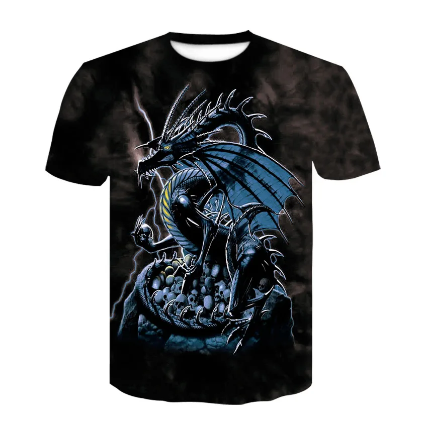 Футболка мужская с 3D-принтом синего дракона, уличная одежда в стил...