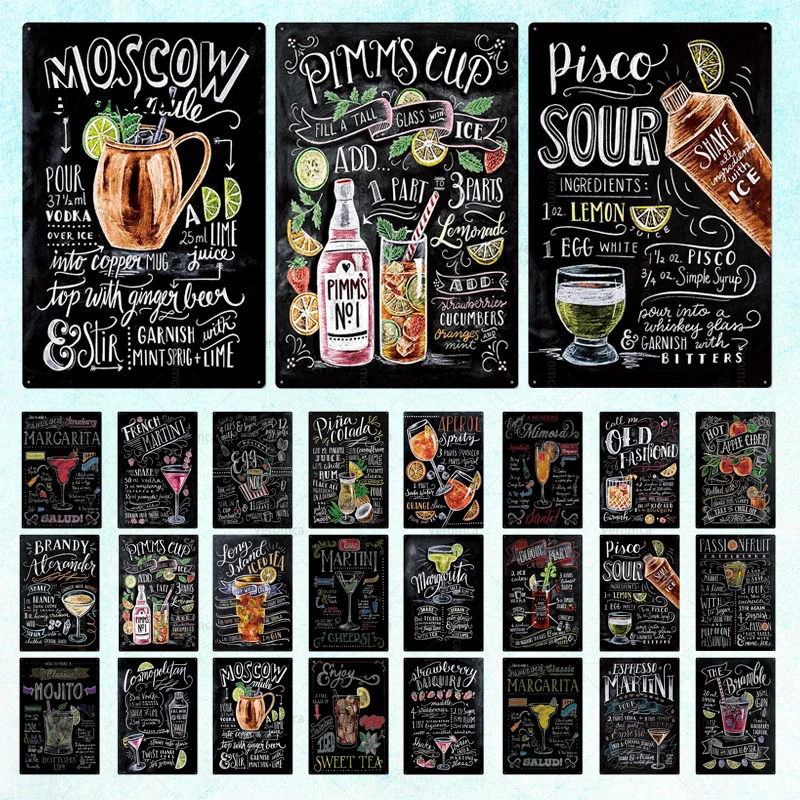Металлическое меню для коктейлей жестяная вывеска Ретро Миксология рецепт для любителей руководство кафе бар Паб мет...