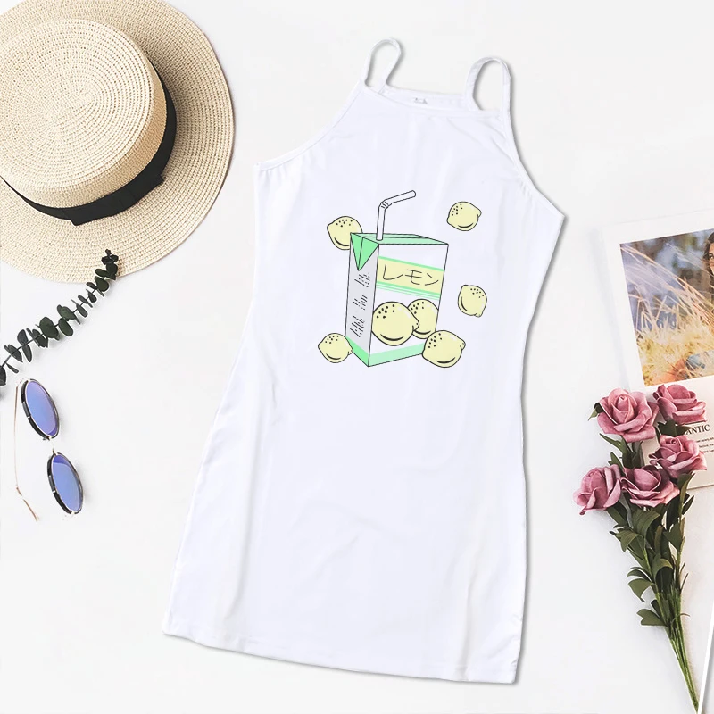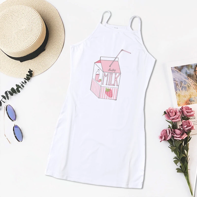 Клубничное молочное милое мультяшное мини-платье для девочек, летнее уличное вечерние платье, Повседневная кавайная повседневная одежда для девочек
