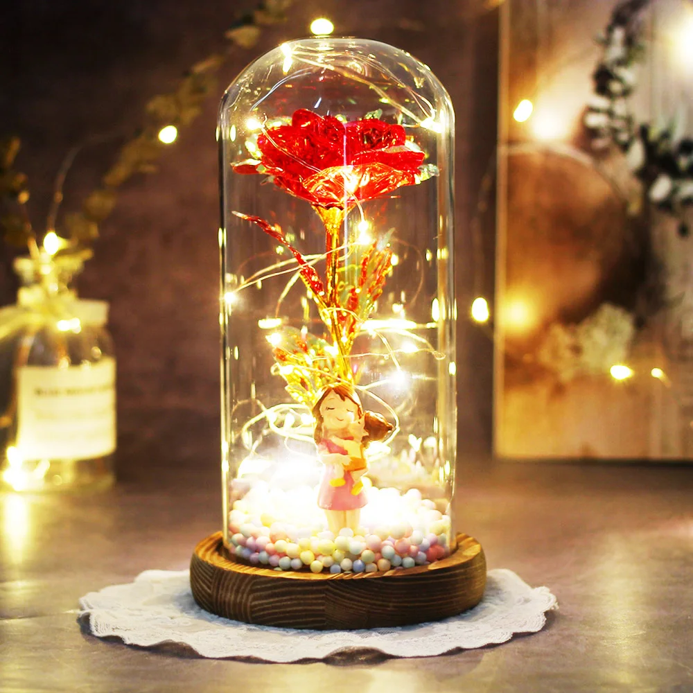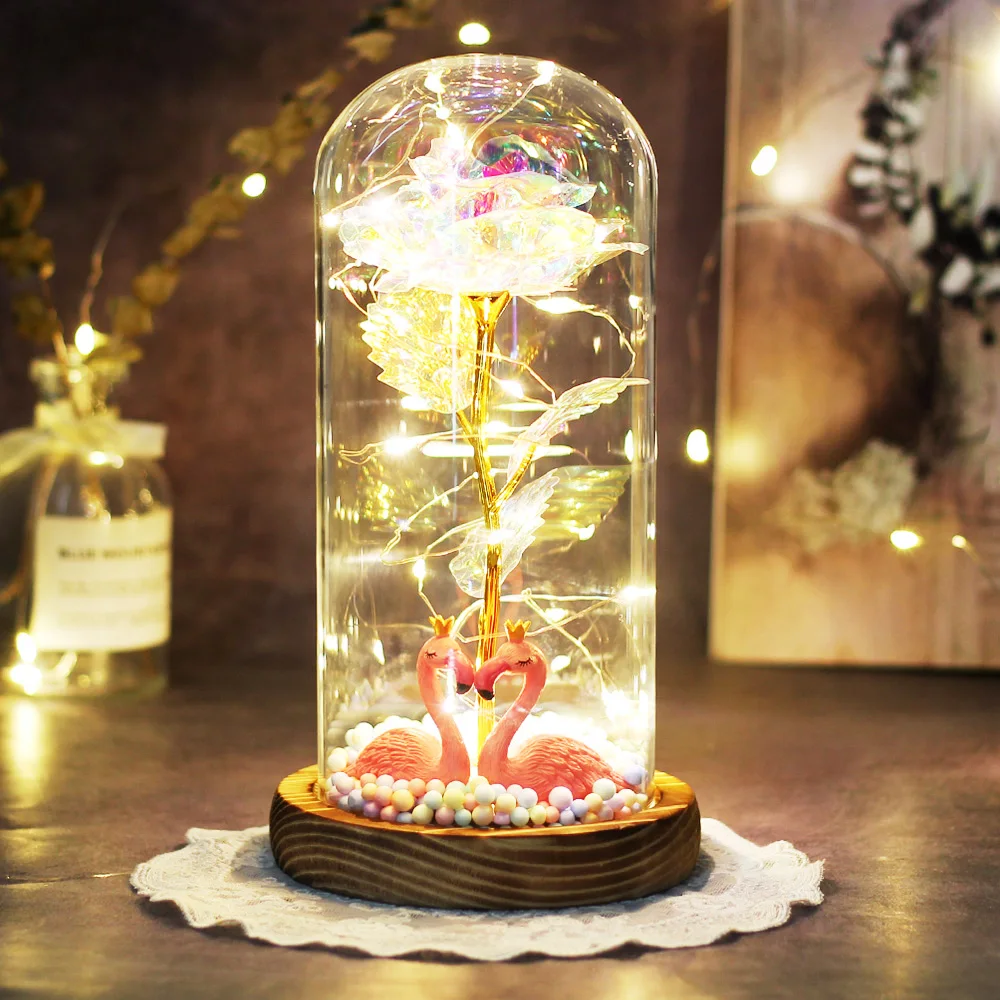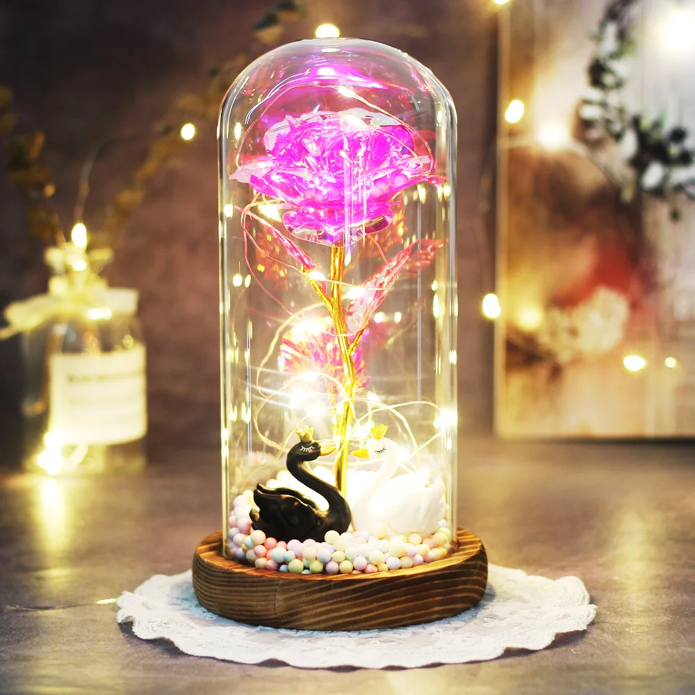 Искусственная вечная чудовище, красивая роза, цветок в стеклянном куполе, светодиодный домашний декор, подарок на Рождество, день рождения, День святого Валентина