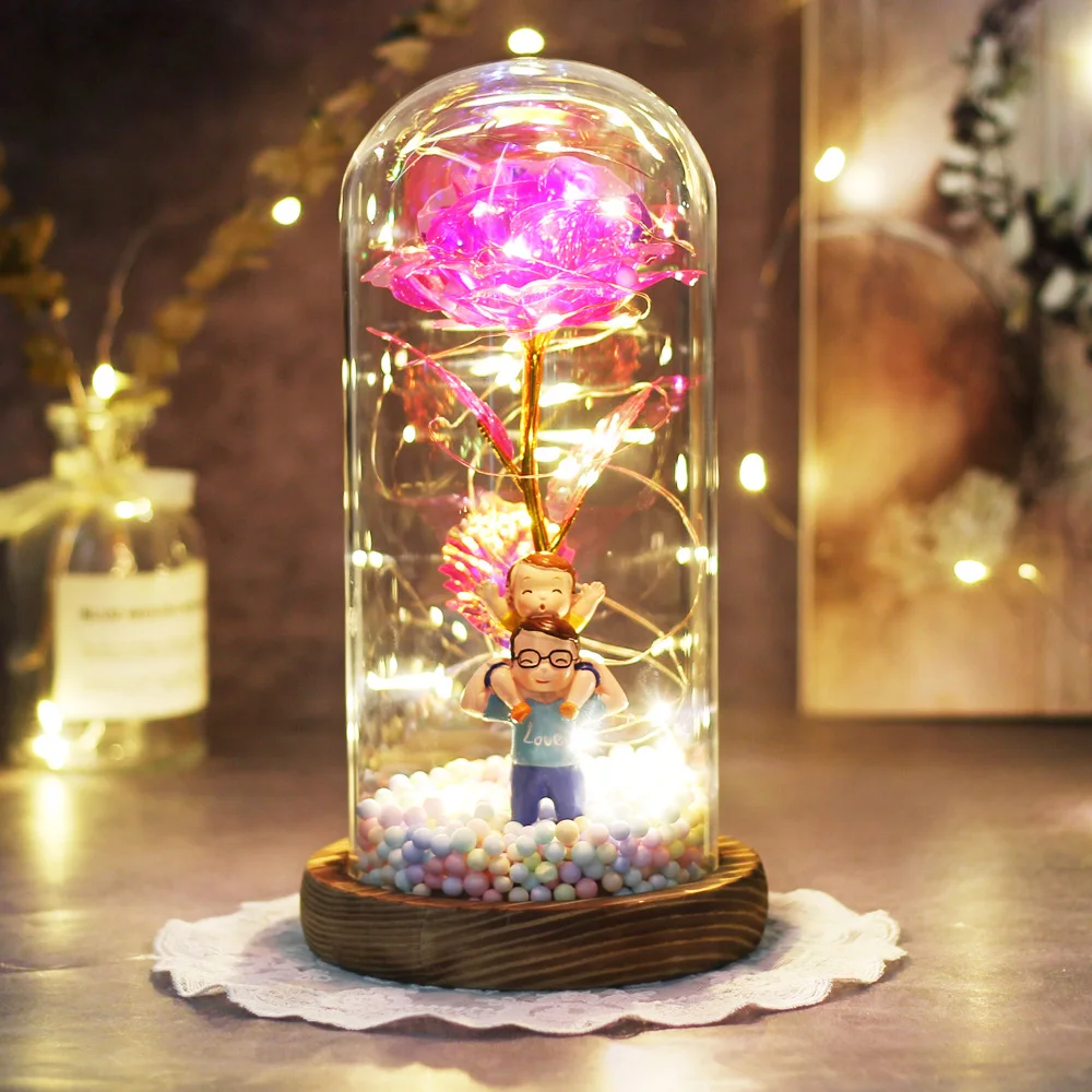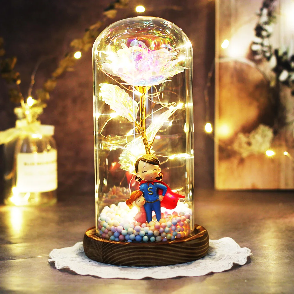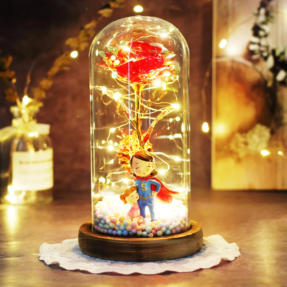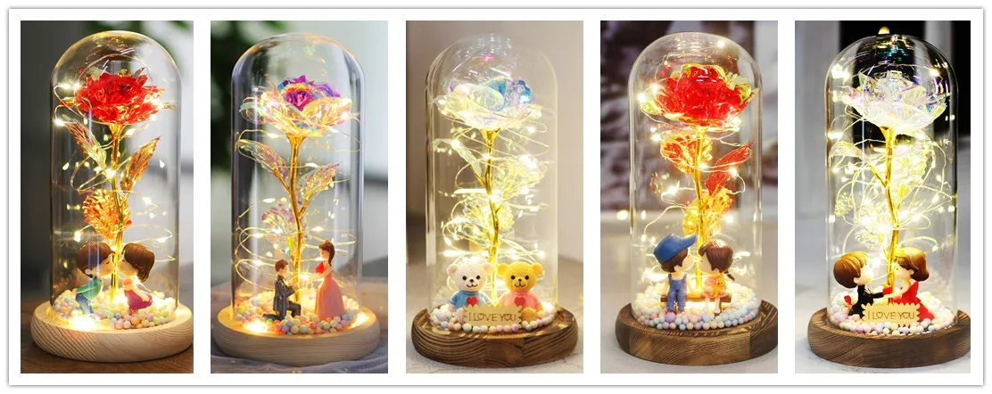 Искусственная вечная чудовище, красивая роза, цветок в стеклянном куполе, светодиодный домашний декор, подарок на Рождество, день рождения, День святого Валентина