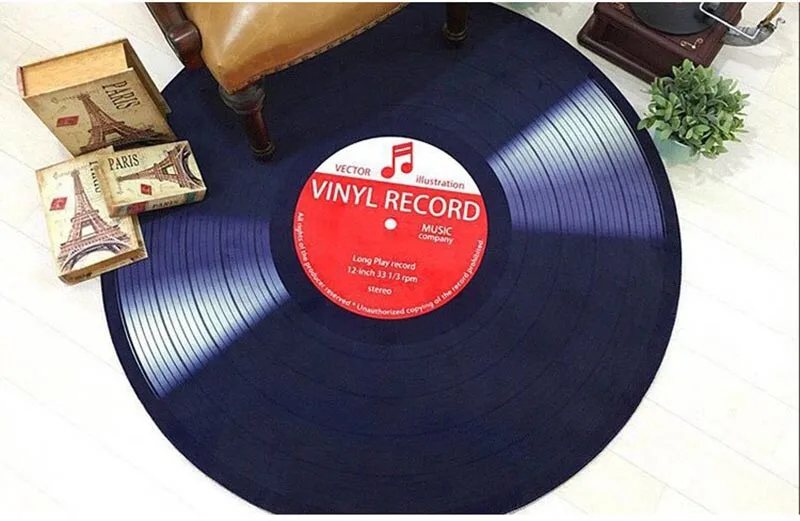 Противоскользящий ковер круглый коврики с принтом для спальни, классические 3D ковры с виниловыми пластинками для гостиной, мягкие коврики, украшение для дома