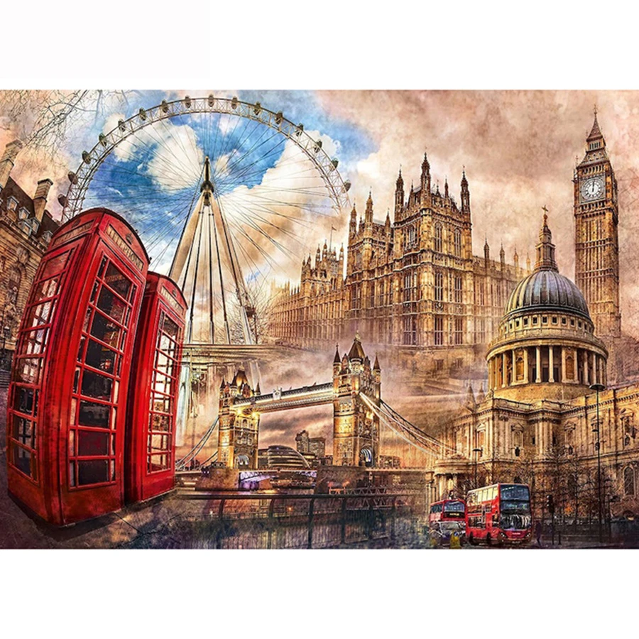 Картина Лондонский квадрат, большие часы, красная телефонная шкатулка, алмазная вышивка, Набор для вышивки крестом, домашний декор, полностью Квадратный бриллиант, 5D