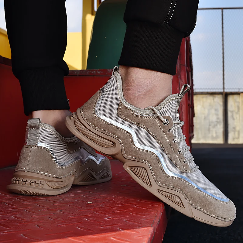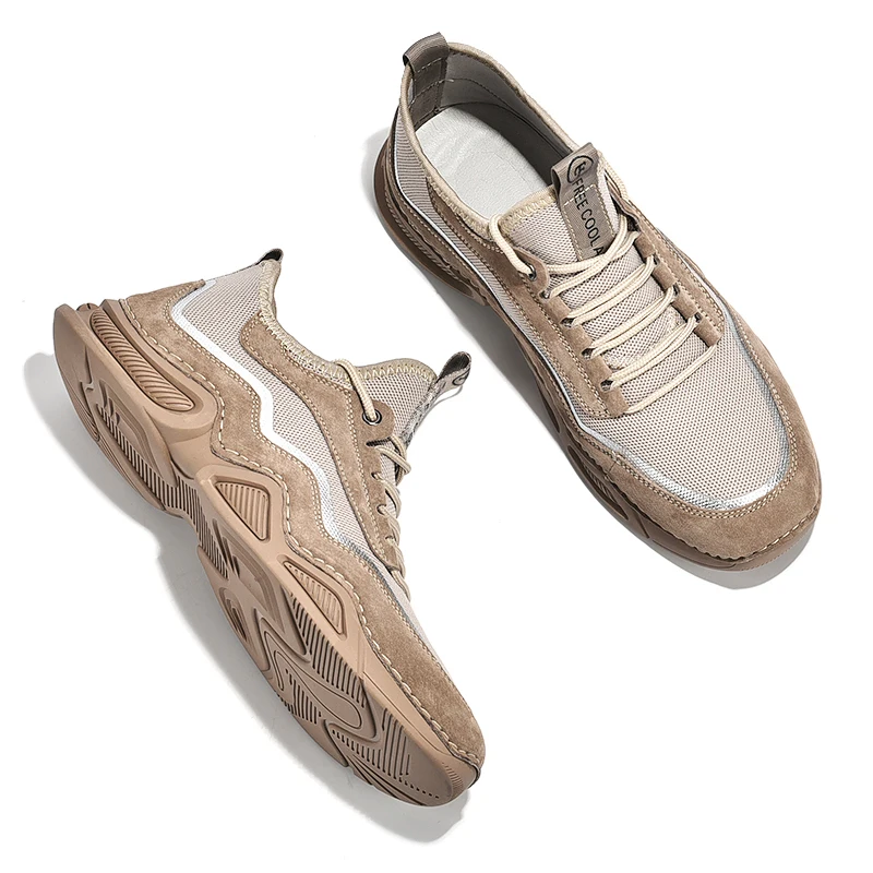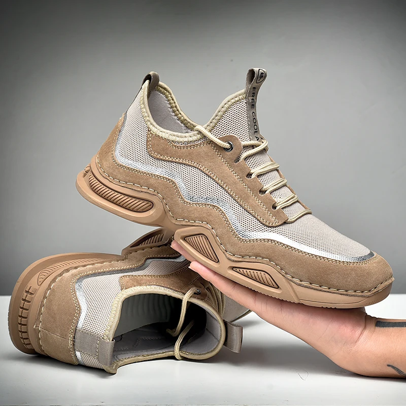 Мужские дышащие кроссовки MVVT, модная повседневная Летняя обувь из замши и сетки, большие размеры
