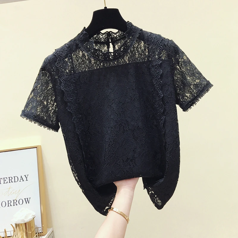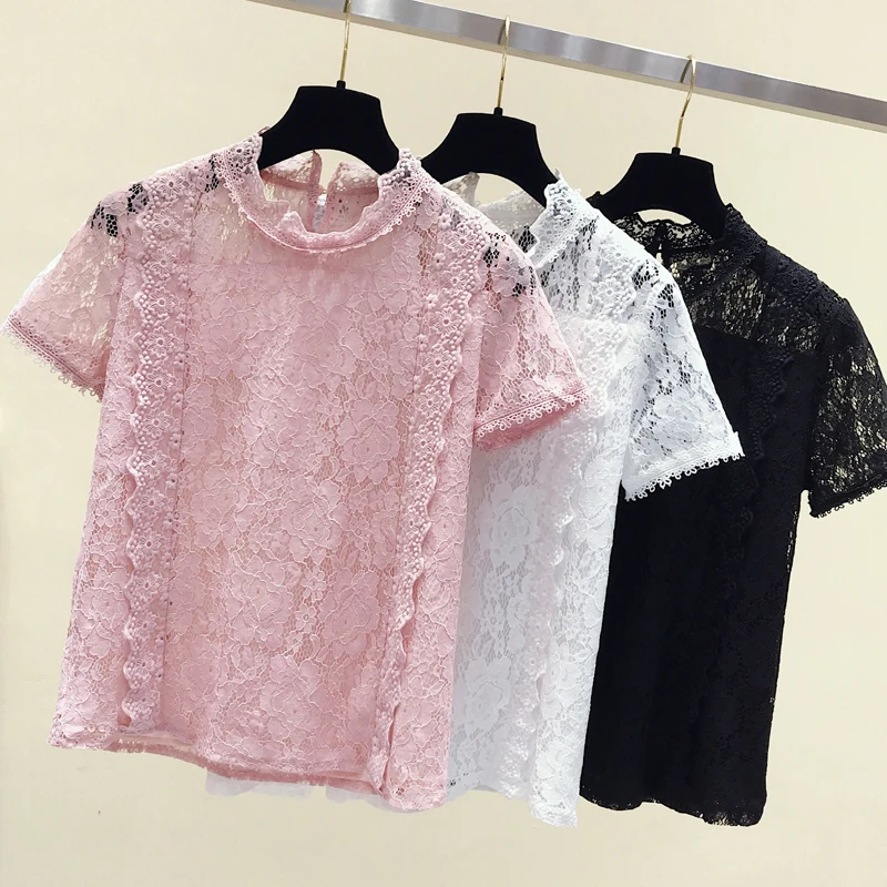 Blusas Mujer De Moda 2021 розовая открытая кружевная блузка для женщин топы летние шорты с длинным рукавом Женские блузки женские топы