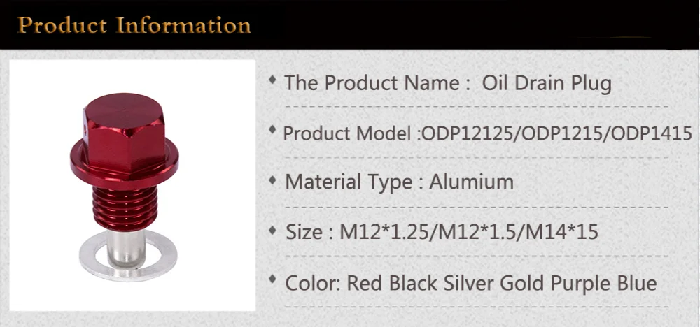 Магнитная сливная пробка помогает сохранить вредное бритье металла из двигателя. Со временем компоненты двигателя изнашиваются, они начнут выпускать металлическую стружку в моторное масло. Эти вилки обладают невероятно сильным магнитом, который помогает собирать этот мусор прямо из масла во время работы. Когда пришло время заменить масло, просто очистите Магнитный конец и повторно используйте его. Каждая пробка для слива масла поставляется с гайкой 1 шт.Размеры и материал: