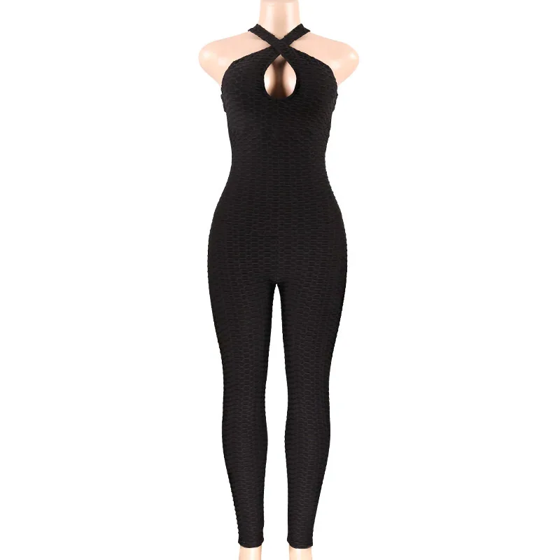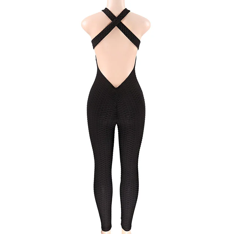 Комбинезон QuanRun женский с перекрестной шнуровкой и открытой спиной, пикантный Повседневный облегающий уличный костюм для фитнеса, весна-лето 2021